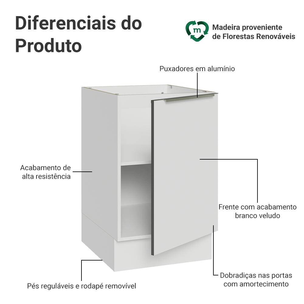 Balcão Cozinha 50x60cm 1 Port (S/ Tampo) B Veludo Lux Madesa