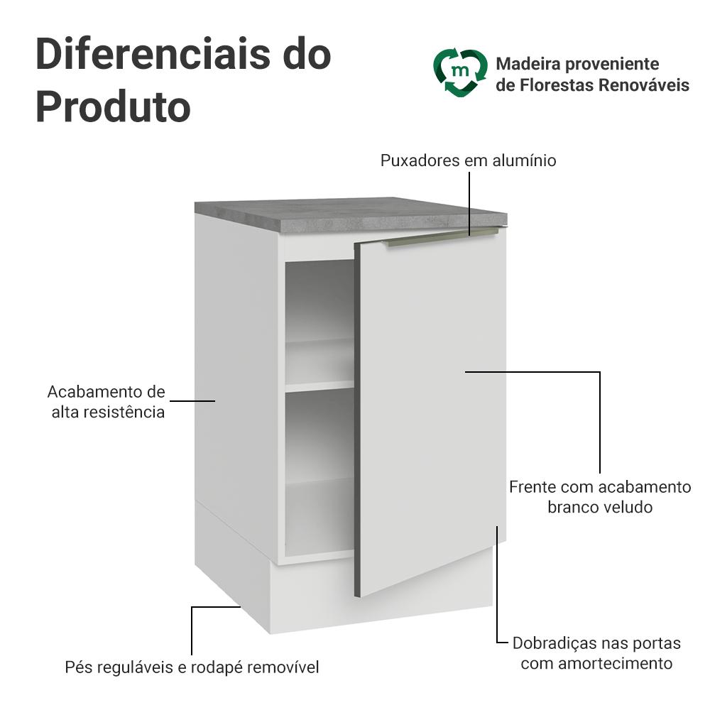 Balcão de Cozinha 50x60cm 1 Porta (Com Tampo) B Lux Madesa