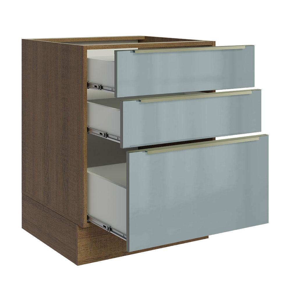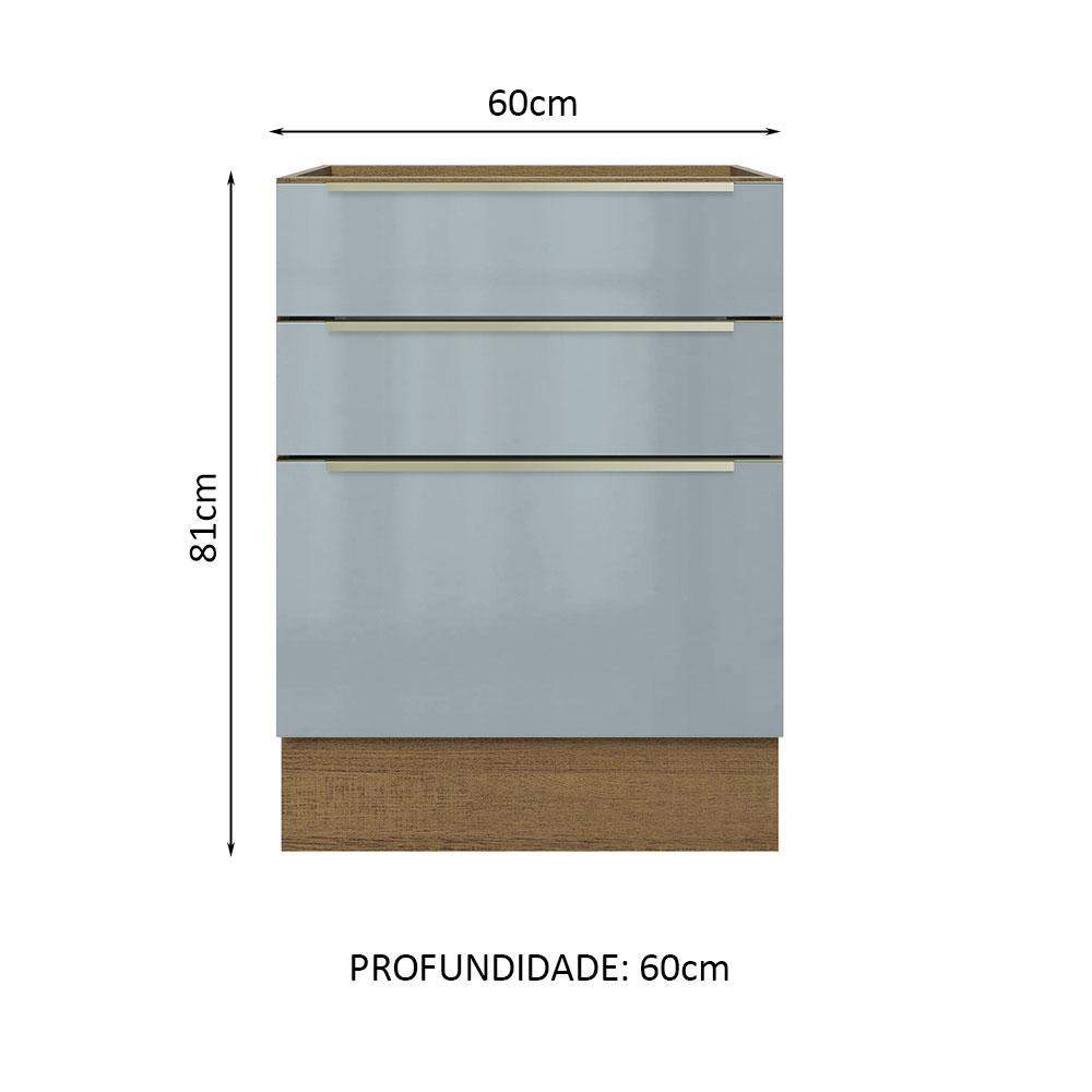 Balcão Madesa Lux 60 cm 3 Gavetas - Rustic/Cinza