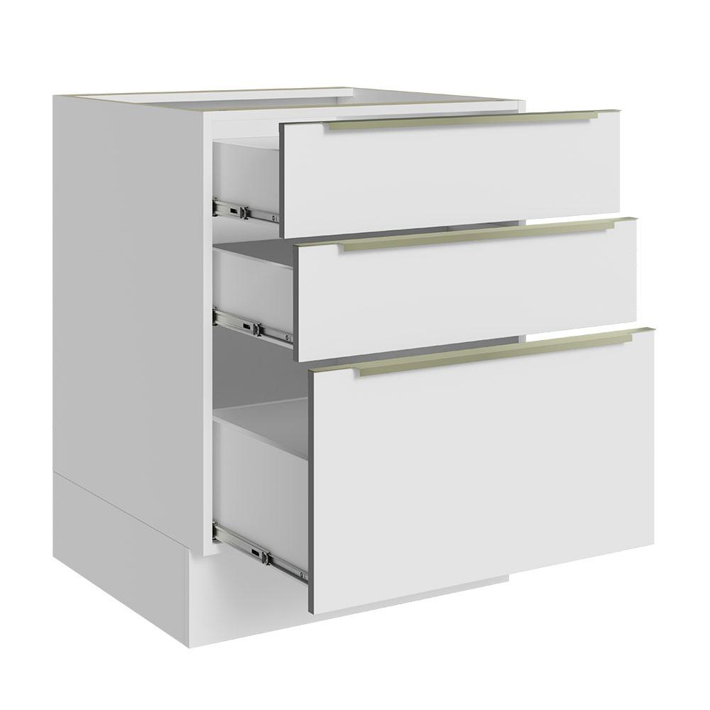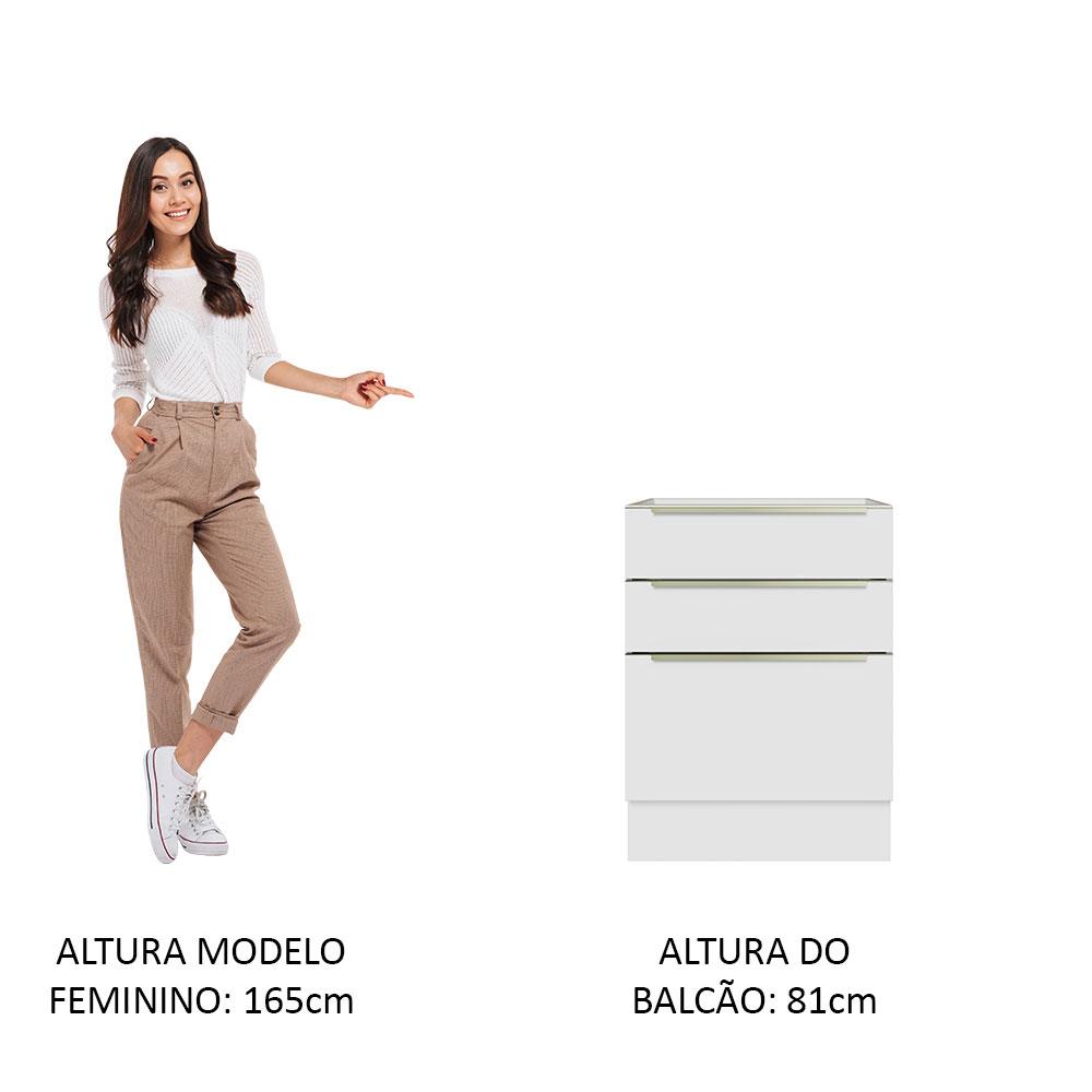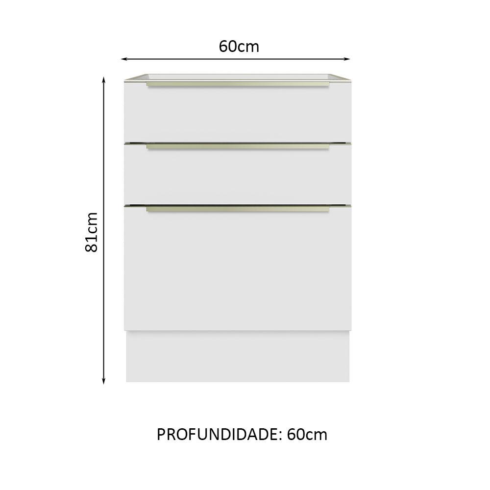 Balcão Madesa Lux 60 cm 3 Gavetas (Sem Tampo) - Branco/Branco Veludo