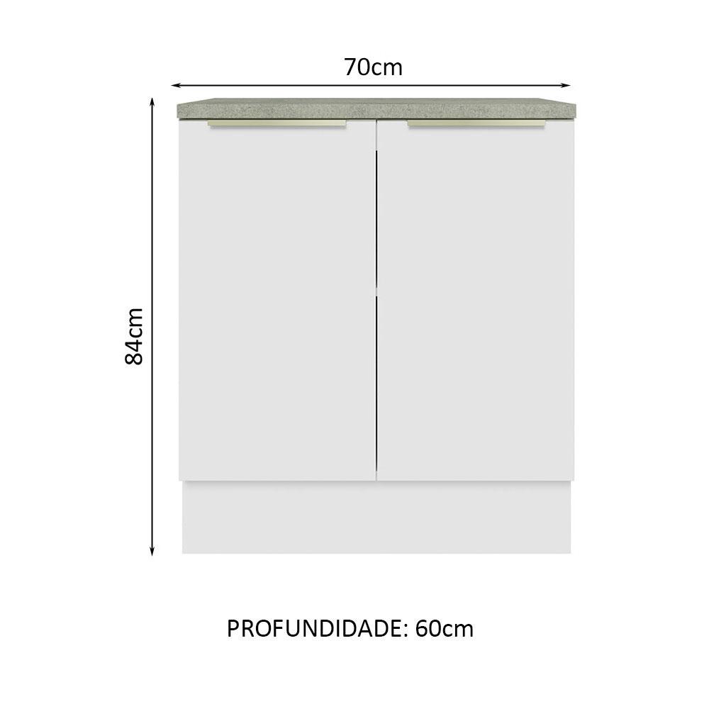 Balcão Madesa Lux 70 cm 2 Portas - Branco/Branco Veludo (Com Tampo)