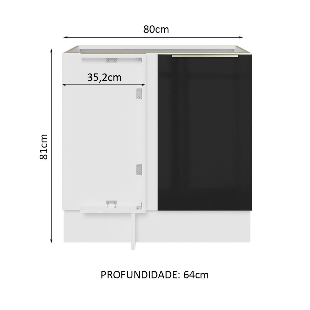 Balcão de Canto Madesa Lux 1 Porta - Branco/Preto