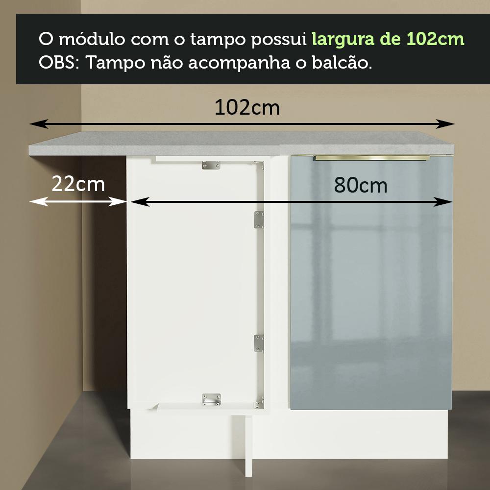 Balcão de Canto Madesa Lux 1 Porta - Branco/Cinza