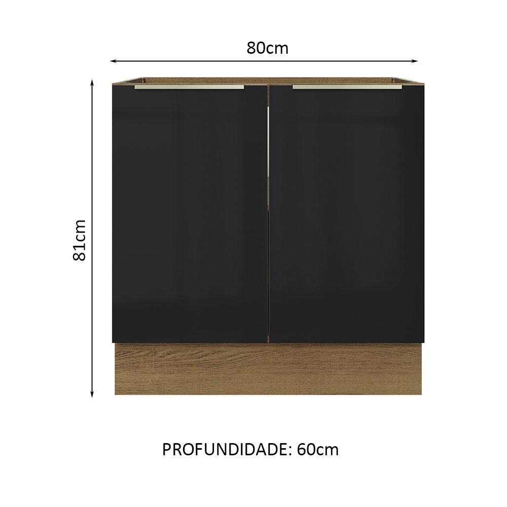 Balcão Madesa Lux 80 cm 2 Portas - Rustic/Preto