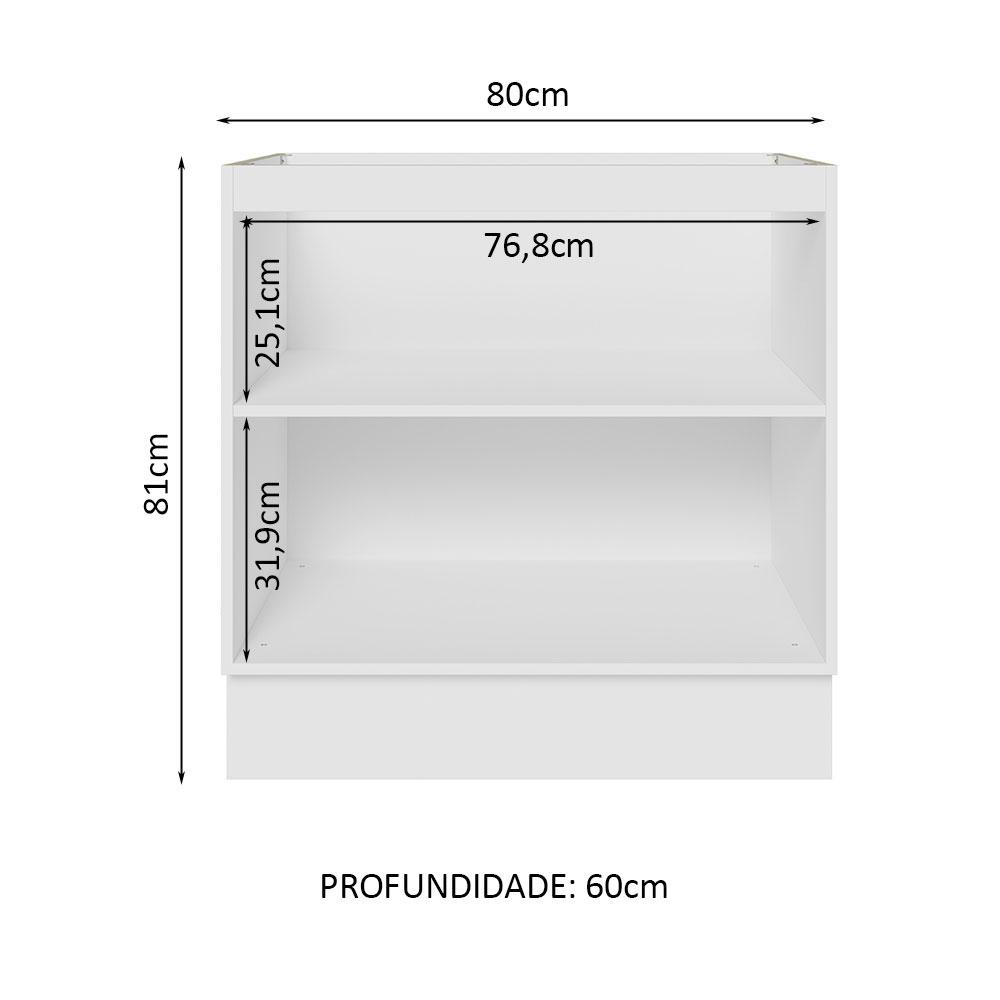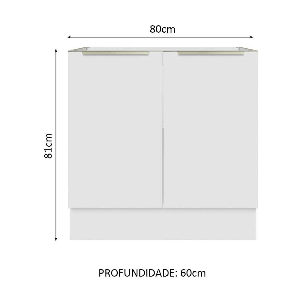 Balcão Madesa Lux 80 cm 2 Portas (Sem Tampo) - Branco/Branco Veludo