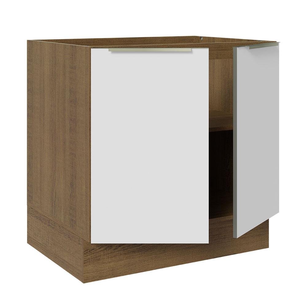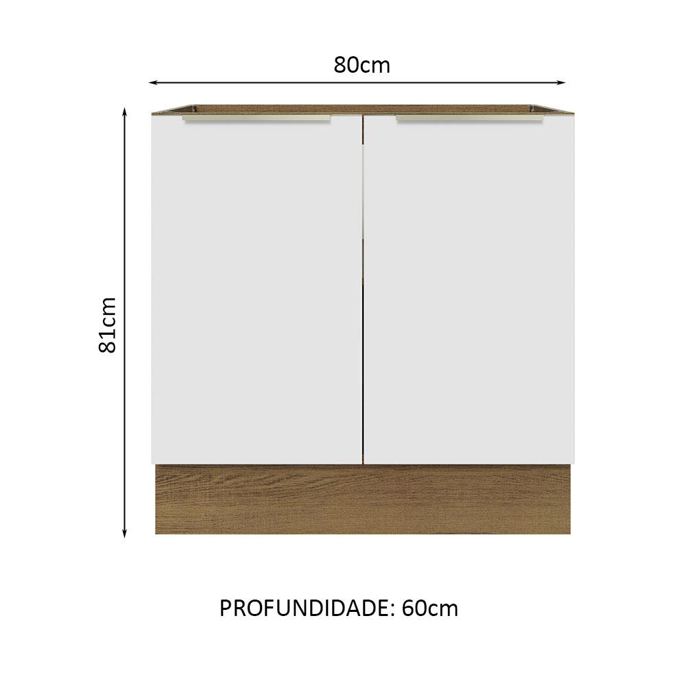 Balcão Madesa Lux 80 cm 2 Portas (Sem Tampo) - Rustic/Branco Veludo