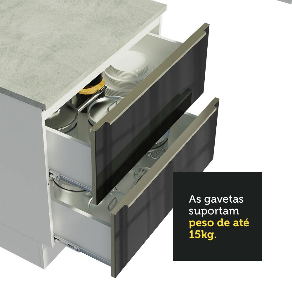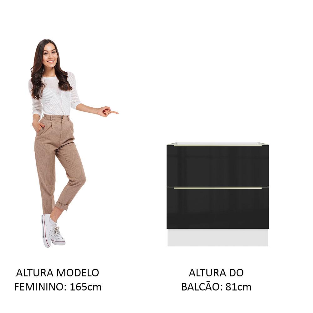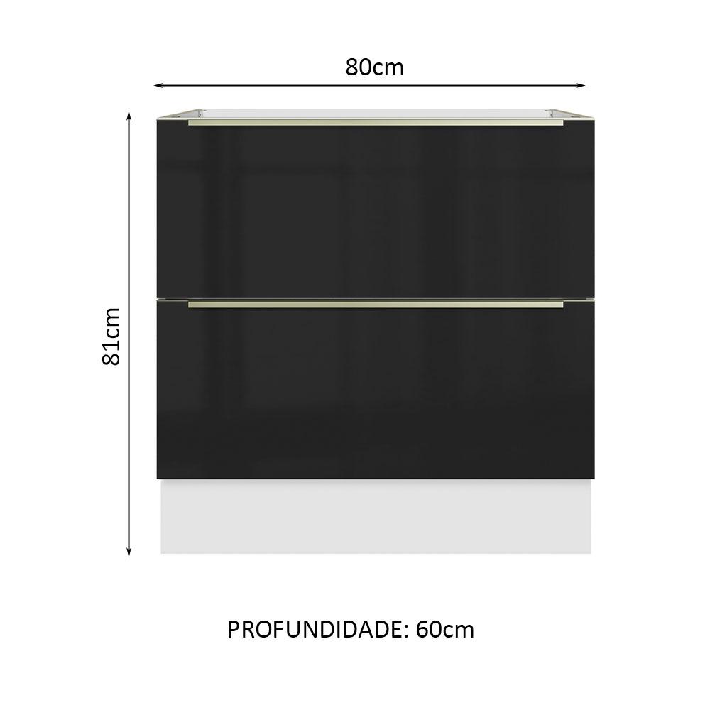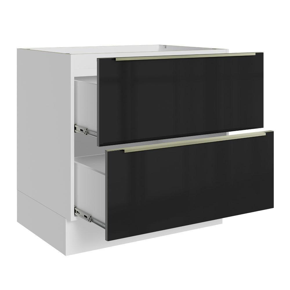 Balcão Madesa Lux 80 cm 2 Gavetas - Branco/Preto