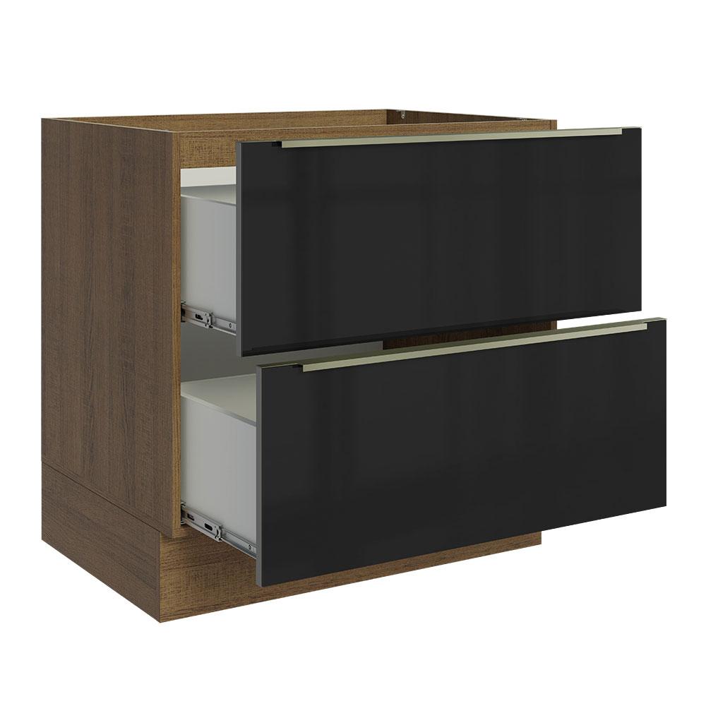 Balcão Madesa Lux 80 cm 2 Gavetas - Rustic/Preto
