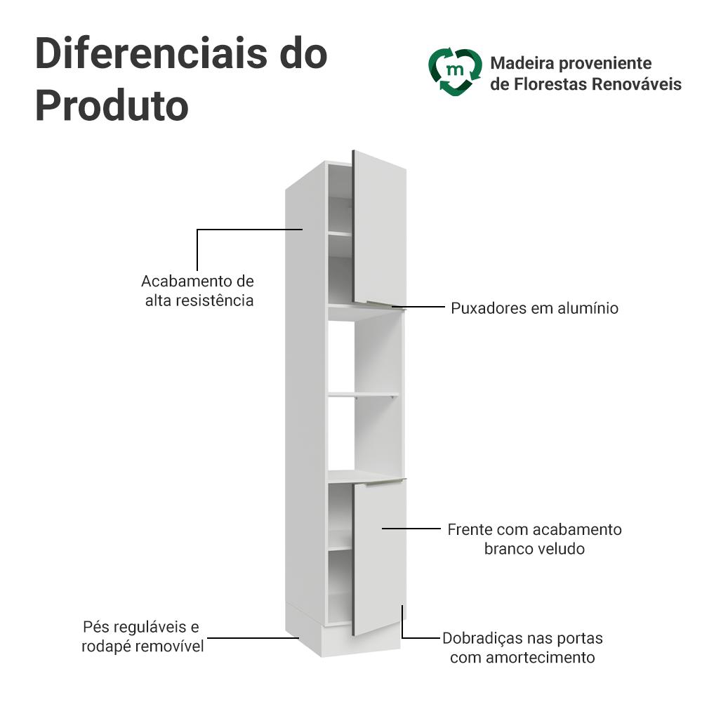 Paneleiro 40cm 2 Portas e 2 Nichos Branco Veludo Lux Madesa