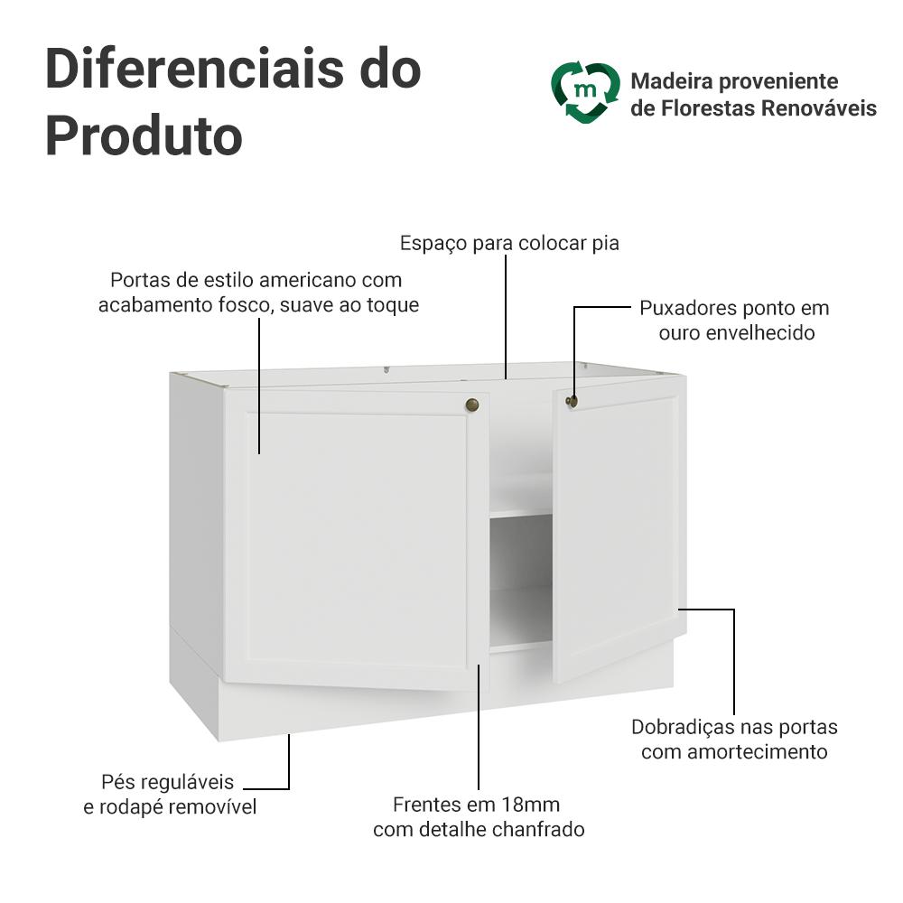 Balcão Gabinete de Pia 120 cm (Sem Tampo) Branco Vik Madesa