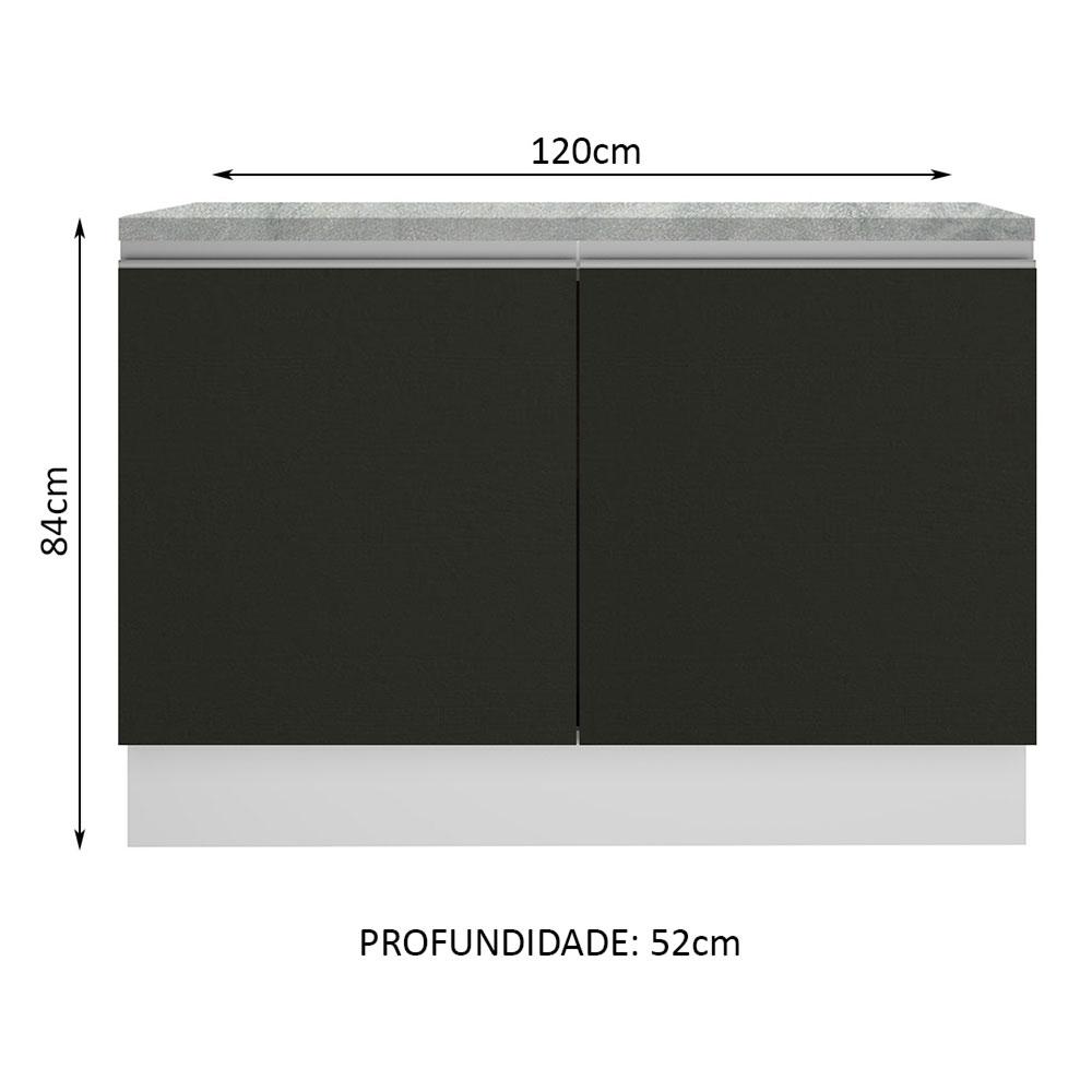 Balcão de Pia Armário de Cozinha 120 cm 2 Portas (Com Tampo) Branco/Preto Glamy Madesa