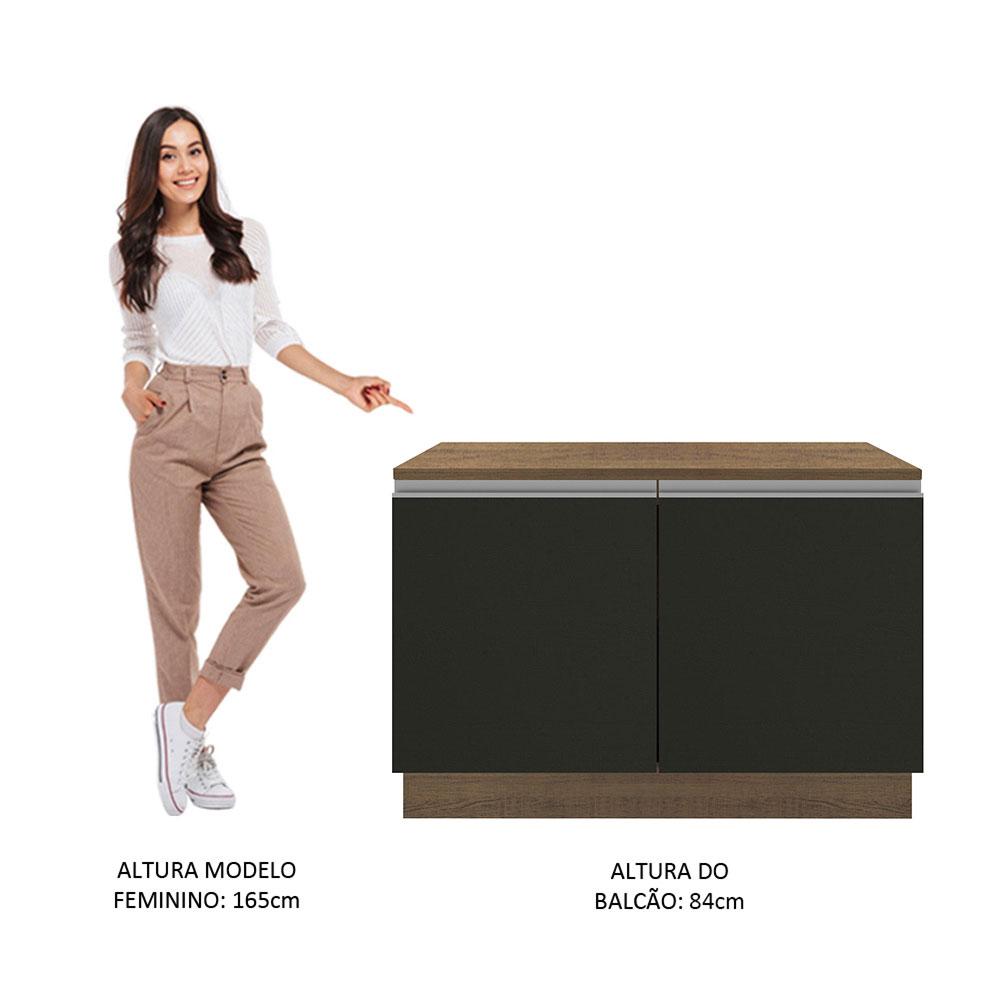 Balcão de Pia Armário de Cozinha 120 cm 2 Portas (Com Tampo) Rustic/Preto Glamy Madesa