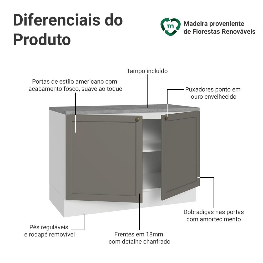 Balcão de Cozinha 120 cm 2 Portas Branco/Cinza Vik Madesa