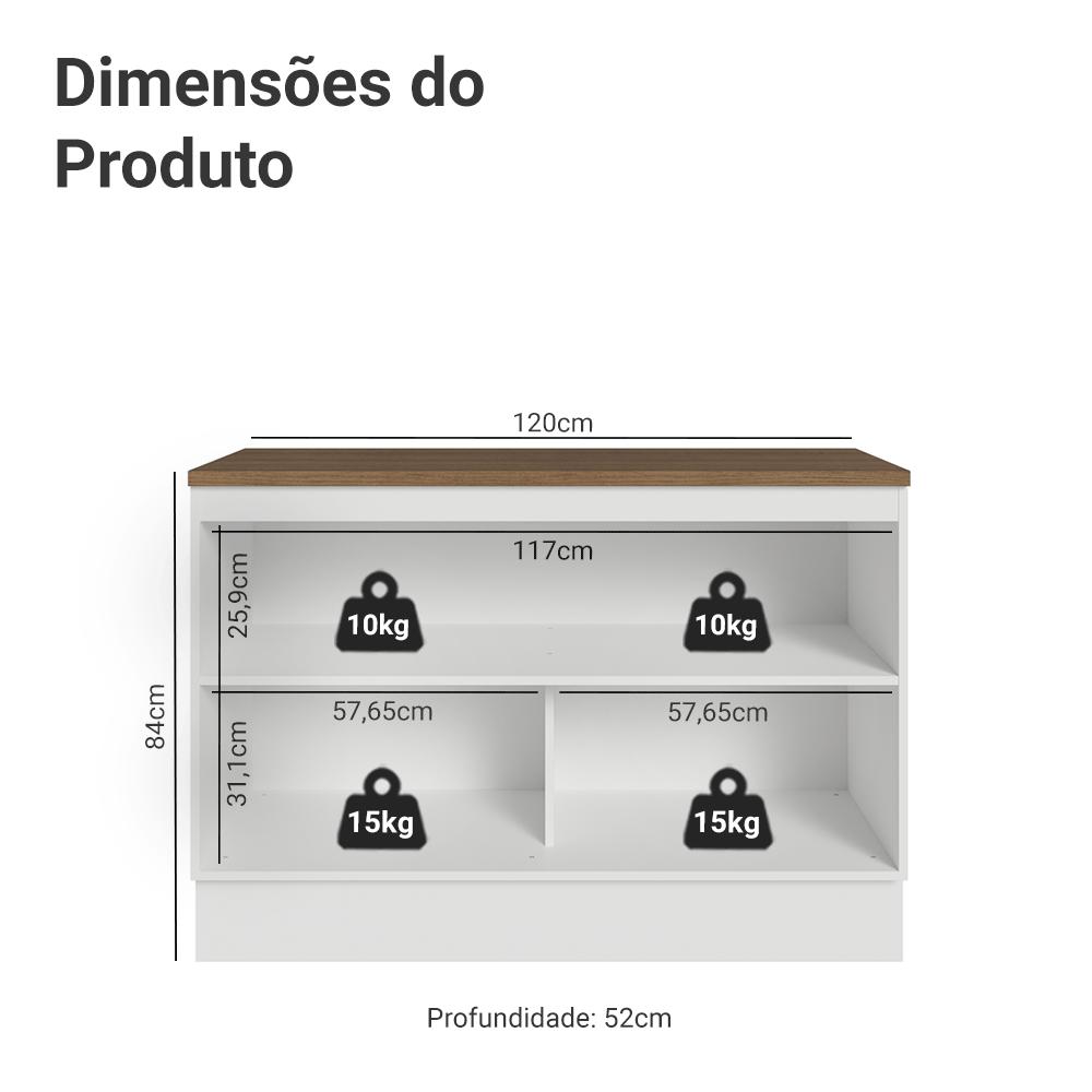 Balcão de Cozinha 120 cm 2 Portas Branco Tampo Rustic Vik Madesa