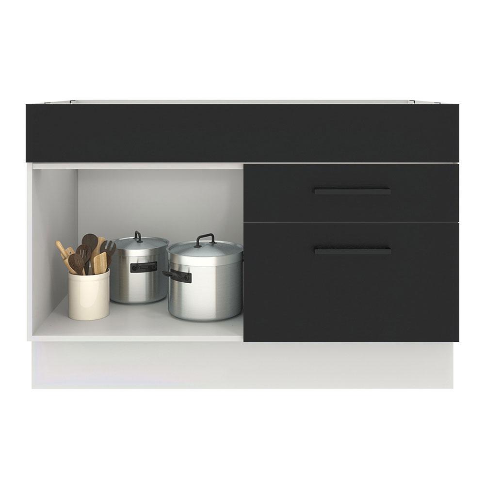 Balcão de Pia Cozinha 1 Porta e 2 Gavetas Branco/Preto Agata Madesa