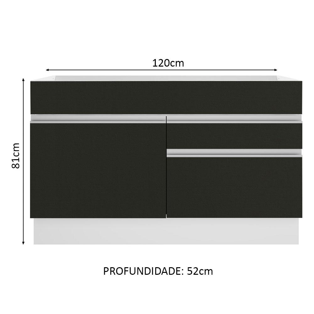 Balcão Gabinete de Pia Armário de Cozinha 120 cm 1 Porta 2 Gavetas Branco/Preto Glamy Madesa