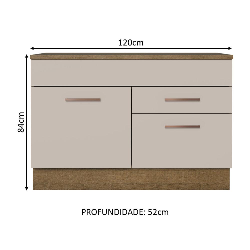 Balcão de Pia Armário de Cozinha 1 Porta e 2 Gavetas (Com Tampo) Rustic Agata Madesa