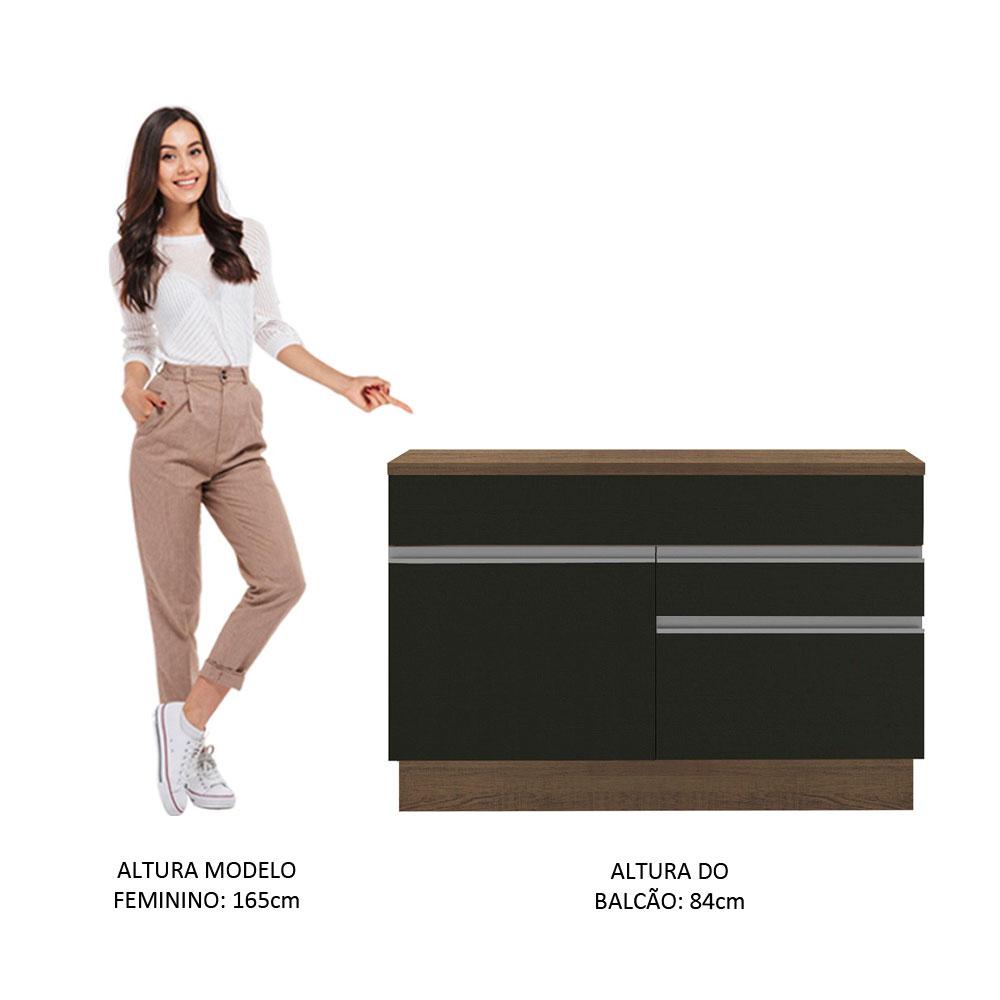 Balcão de Pia Armário de Cozinha 120 cm 1 Porta e 2 Gavetas (Com Tampo) Rustic/Preto Glamy Madesa