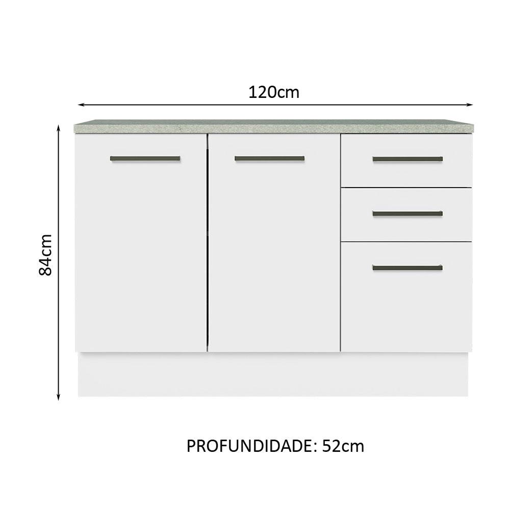 Balcão de Pia Armário de Cozinha 2 Portas e 3 Gavetas (Com Tampo) Branco Agata Madesa