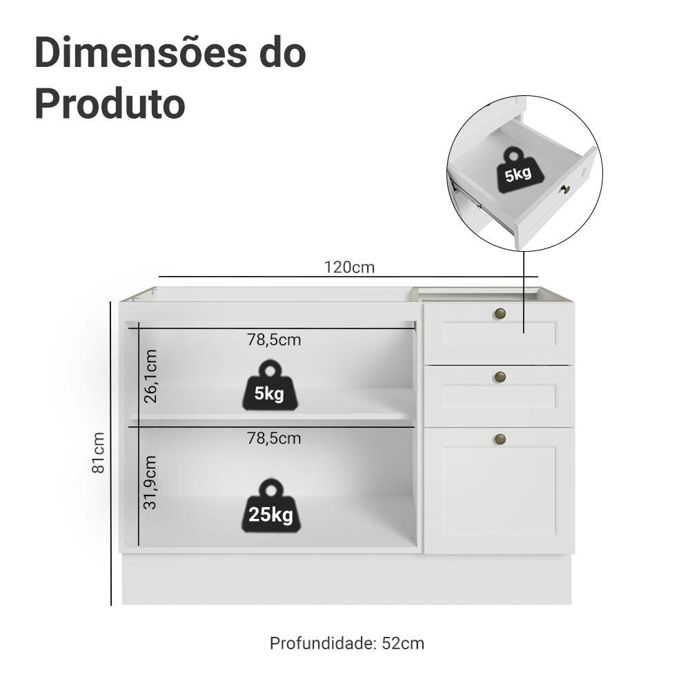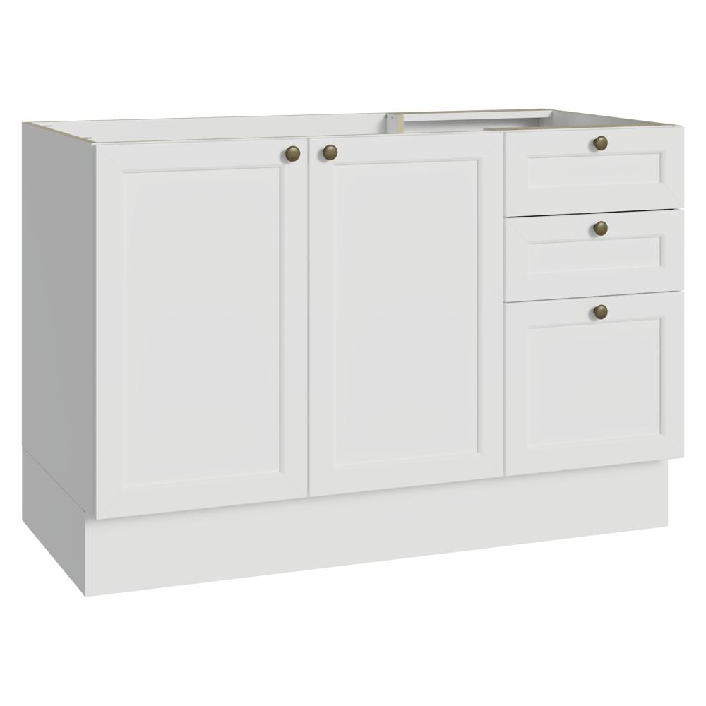 Balcão de Pia 120 cm 2 Portas 3 Gavetas (Sem Tampo) Branco Vik Madesa