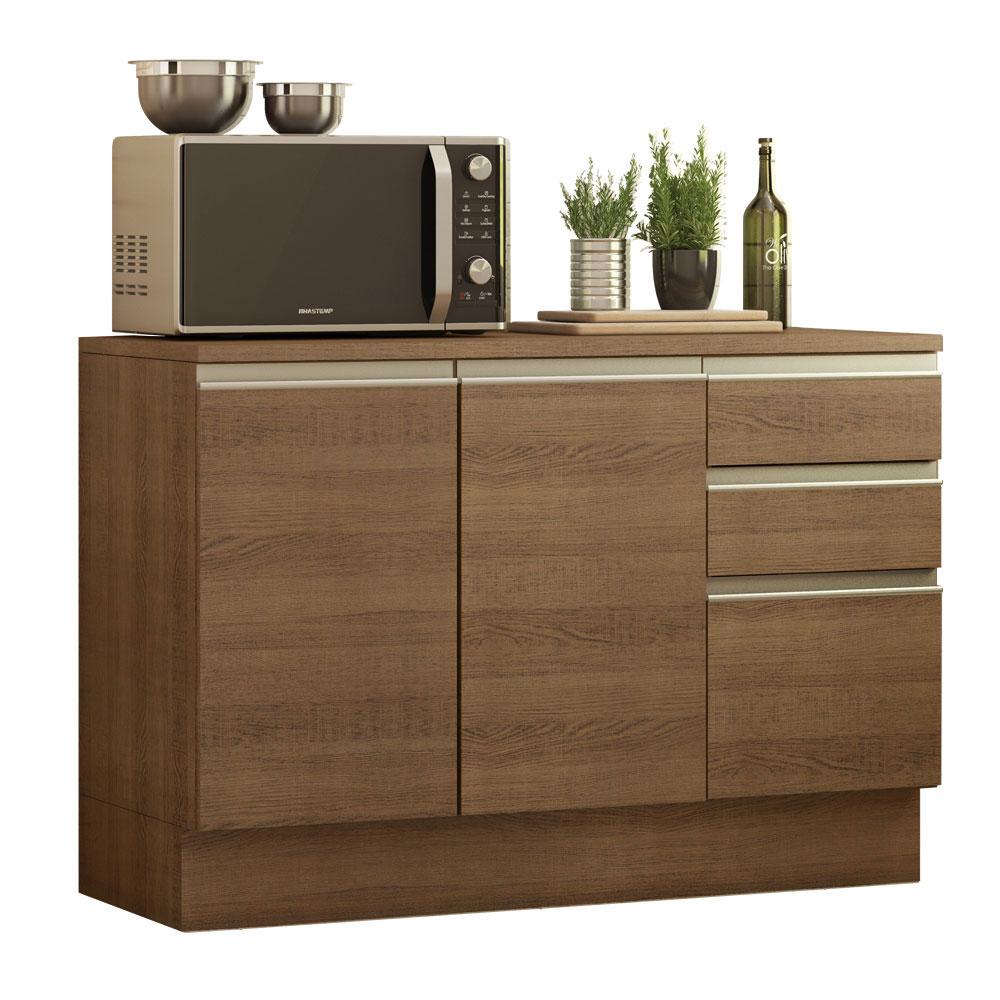 Balcão de Pia Armário de Cozinha 120 cm 2 Portas e 3 Gavetas (Com Tampo) Rustic Glamy Madesa