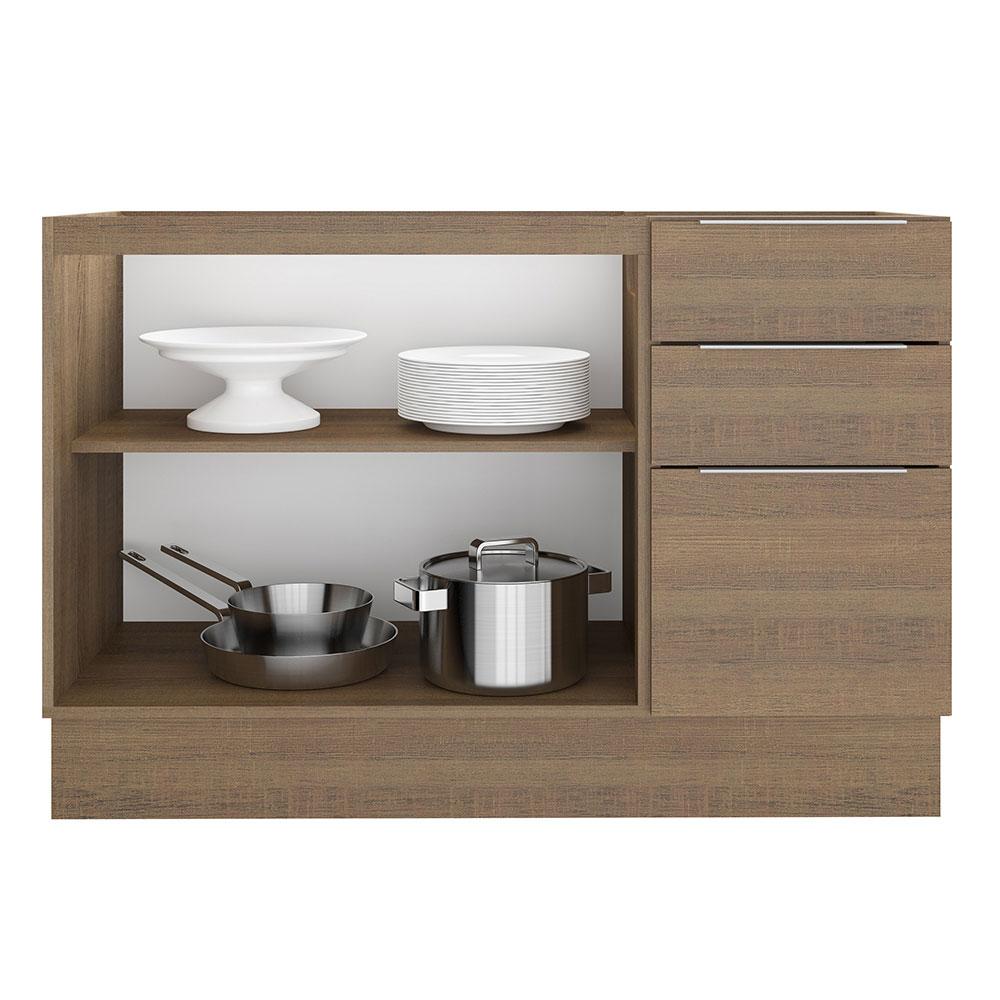 O Balcão de Pia de 120 cm com duas portas e três gavetas da linha Stella da Madesa foi desenvolvido pensando no máximo de aproveitamento do espaço interno.É fabricado com materiais nobres como puxadores slim em alumínio, dobradiças metálicas com amortecimento e corrediças telescópicas para abertura total das gavetas. É ideal para organizar tudo na sua cozinha.O acabamento é no padrão amadeirado Rustic e as partes internas das costas e das gavetas são brancas. O processo é feito com a Pintura Poliéster ecológica com sete camadas de proteção, exclusiva da Madesa.Os pés são reguláveis em PVC e o rodapé é removível para facilitar a limpeza. O espaço para a colocação de tampo ou pia é de 120 cm de largura por 52 cm de profundidade.A linha Stella é totalmente modulada. É possível combinar este balcão com outros módulos disponíveis na linha, inclusive mesclando diferentes cores, para você criar a cozinha dos seus sonhos.Imagens meramente ilustrativas. A decoração não acompanha o produto.Itens inclusos:- Um (1) Balcão de 120 cm de largura com duas (2) portas e três (3) gavetas (Não acompanha tampo).Código do produto: G241245ZTEObs.: A Madesa não disponibiliza serviço de montagem. O produto segue com manual de instalação e todas as ferragens necessárias para sua montagem.1 – O produto é novo ou usado?R.: Todos os produtos da Madesa são novos, enviados da nossa fábrica diretamente para as casas de nossos clientes.2 – O produto vem montado? Se não, vocês realizam a montagem?R.: A Madesa não disponibiliza serviço de montagem. Todos os produtos seguem com manual de instalação e as ferragens necessárias. Alguns produtos possuem vídeo explicando o passo a passo da montagem.3 – Vocês possuem loja física? Posso retirar meu produto em mãos?R.: Não possuímos loja física, apenas loja virtual. Confira as opções de envio ao colocar o seu CEP.4 – Qual é o valor do envio? Posso pagar separadamente?R.: O valor do envio é calculado com base no peso e volume do produto, e no CEP de destino. Você pode calcular o valor e prazo de entrega no simulador.5 – A Madesa entrega em todo Brasil? Como é feita a entrega?R.: Sim, entregamos no Brasil inteiro através de transportadoras parceiras.6 – O produto acompanha Nota Fiscal?R.: Sim, todos os produtos são entregues com suas respectivas notas fiscais.7 – Os produtos possuem garantia?R.: Sim. A Madesa oferece 3 meses de garantia para defeitos de fabricação.A Madesa se dedica à sustentabilidade com várias iniciativas: temos uma usina própria para gerar energia que abastece uma de nossas fábricas. Selecionamos nossos fornecedores, priorizando aqueles que possuem um compromisso com a sustentabilidade e proteção do meio ambiente. Todo o plástico utilizado no setor produtivo é proveniente de reciclagem e as suas sobras são encaminhadas ao fornecedor que os recicla. Também investimos no desenvolvimento contínuo de nossos colaboradores e em ações educacionais que beneficiem a comunidade.