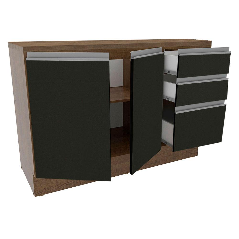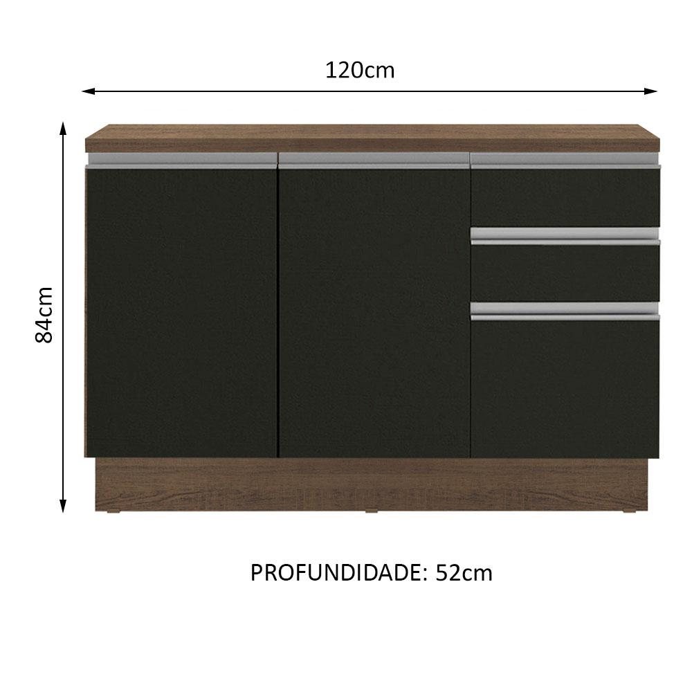 Balcão de Pia Armário de Cozinha 120 cm 2 Portas e 3 Gavetas (Com Tampo) Rustic/Preto Glamy Madesa