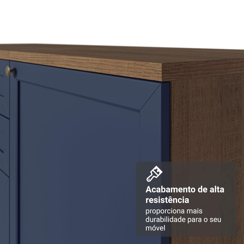 Balcão de Pia 120 cm 2 Portas 3 Gavetas (Sem Tampo) Rustic/Azul Vik Madesa