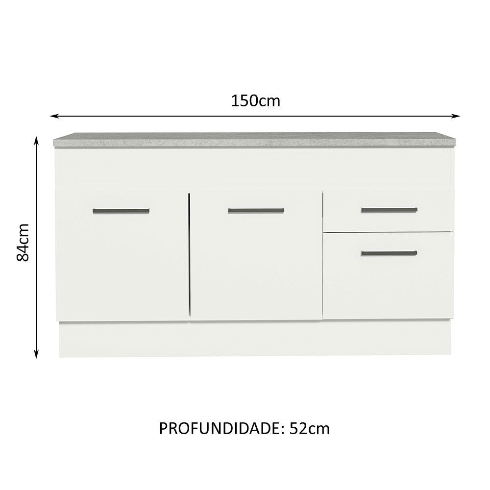 Balcão de Pia Cozinha 150 cm 2 Portas e 2 Gavetas (Com Tampo) Branco Agata Madesa