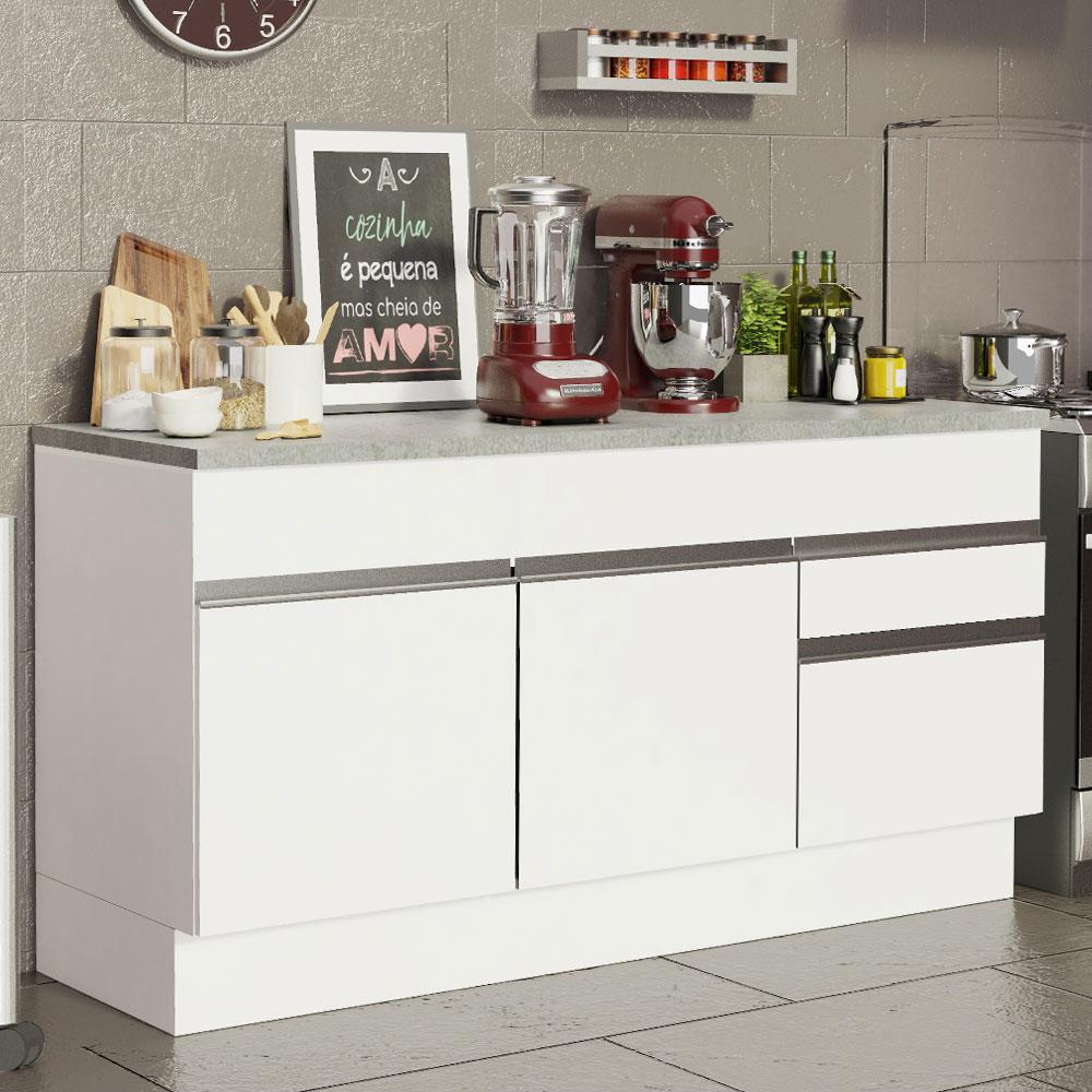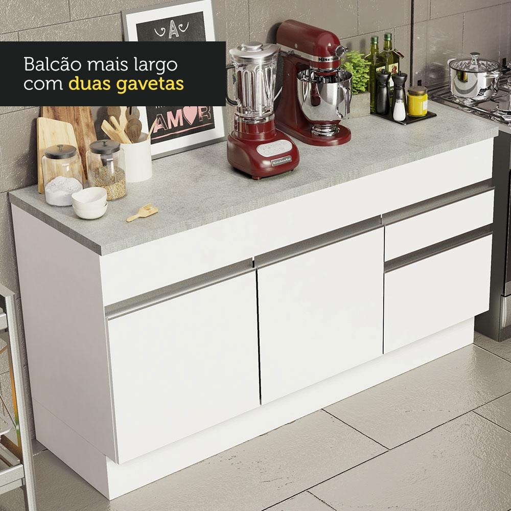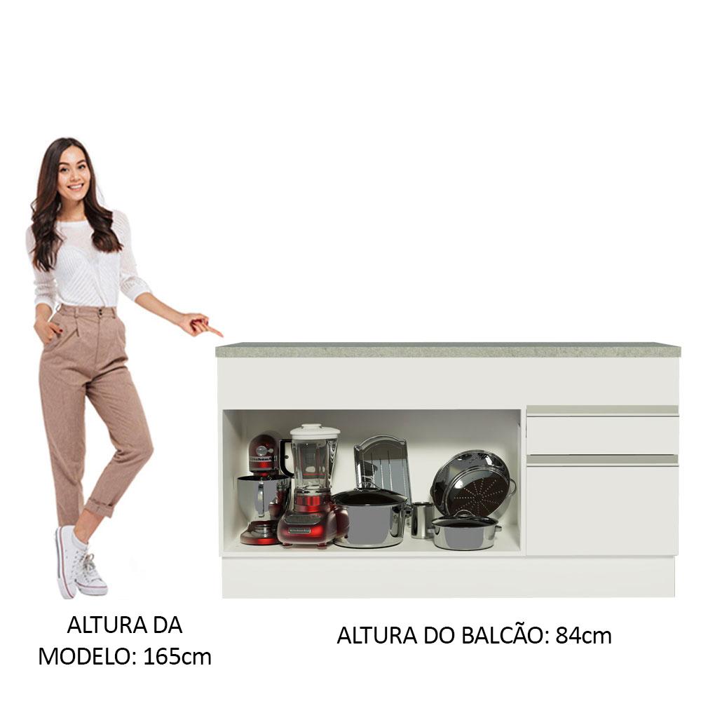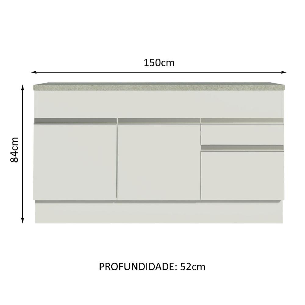 Balcão de Pia Armário de Cozinha 150 cm 2 Portas e 2 Gavetas (Com Tampo) Branco Glamy Madesa
