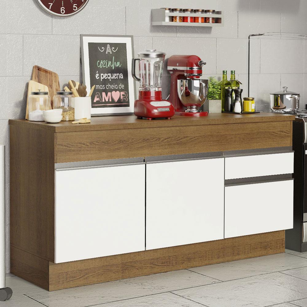 Balcão de Pia Armário de Cozinha 150 cm 2 Portas e 2 Gavetas (Com Tampo) Rustic/Branco Glamy Madesa