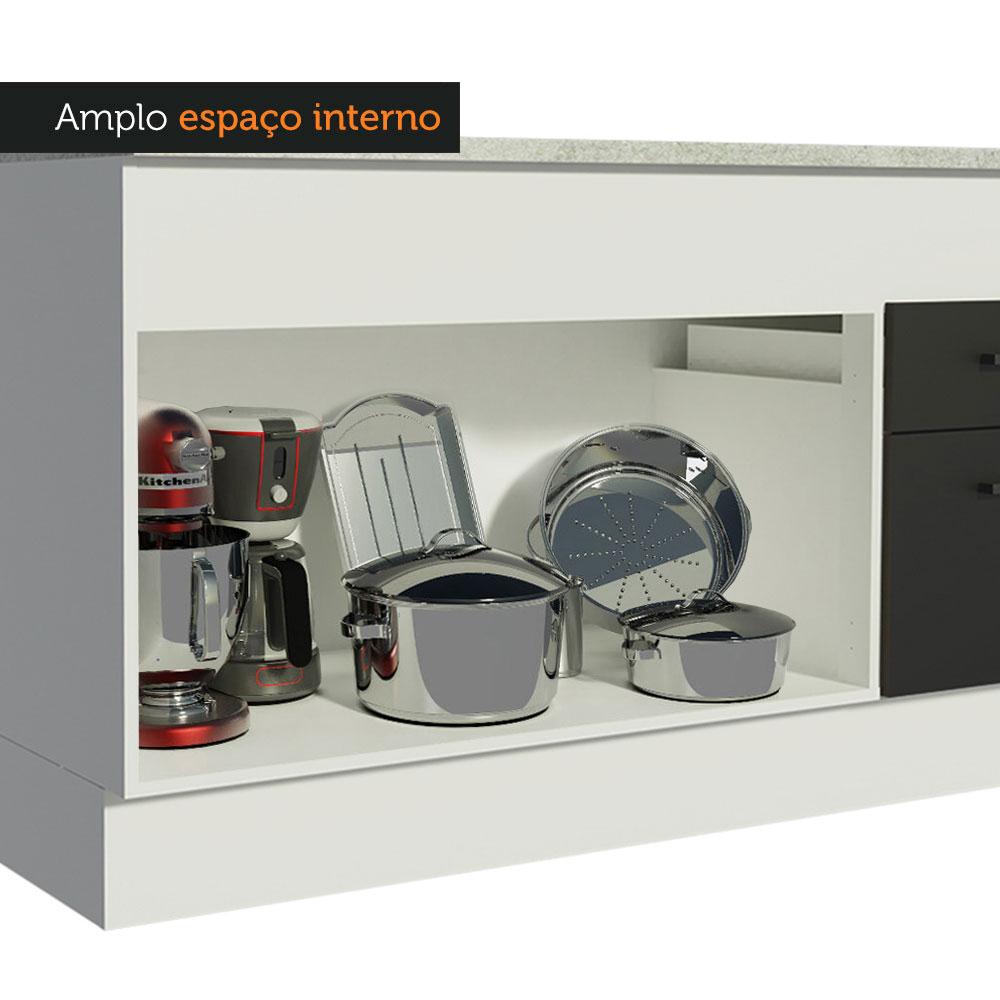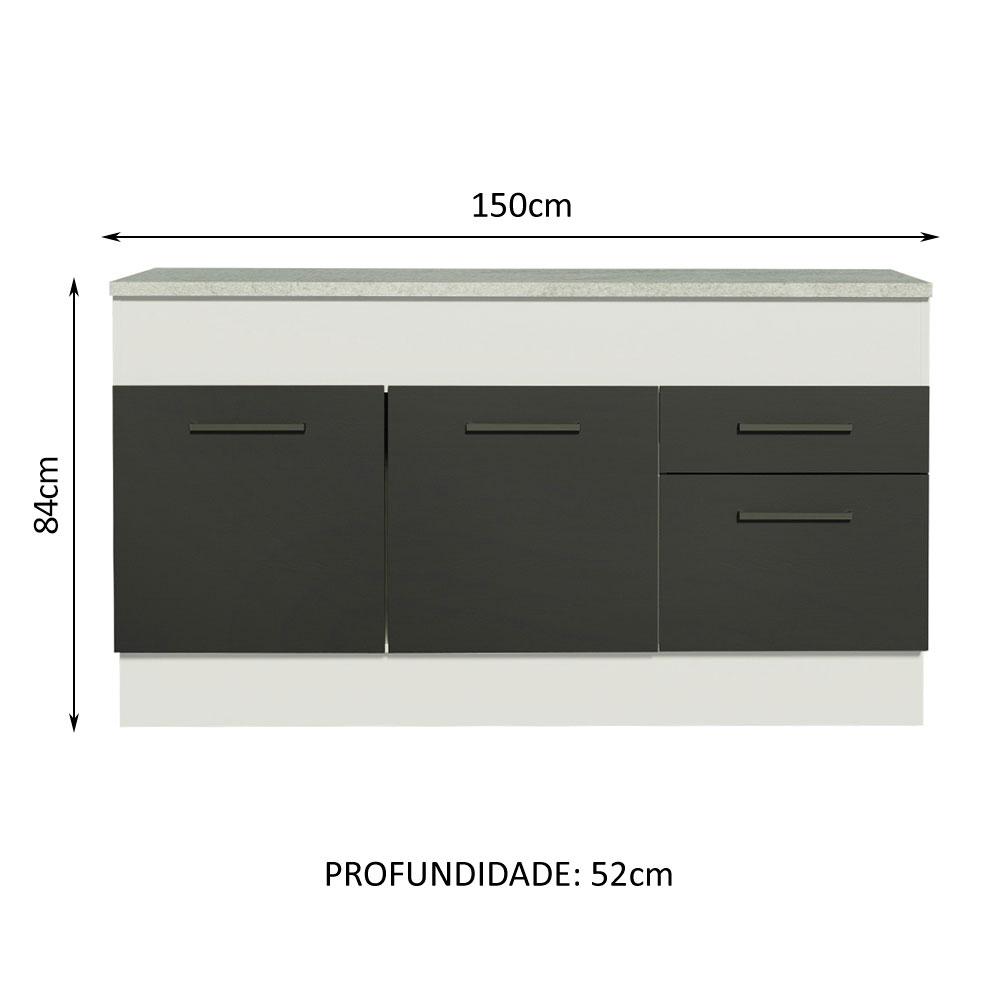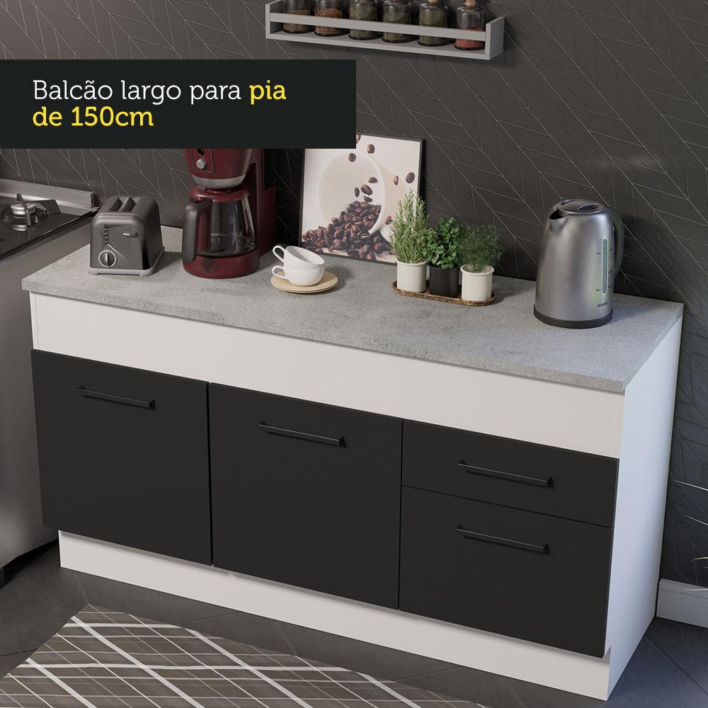 Balcão de Pia Cozinha 150 cm 2 Portas e 2 Gavetas (Com Tampo) Branco/Preto Agata Madesa