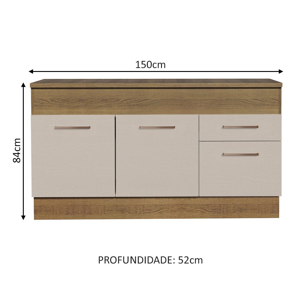 Balcão de Pia Cozinha 150 cm 2 Portas e 2 Gavetas (Com Tampo) Rustic/Crema Agata Madesa