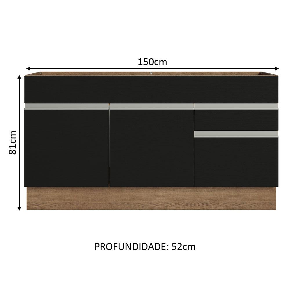 Balcão Gabinete de Pia Armário de Cozinha 150 cm 2 Gavetas 2 Portas (Sem Tampo e Pia) Rustic/Preto Glamy Madesa