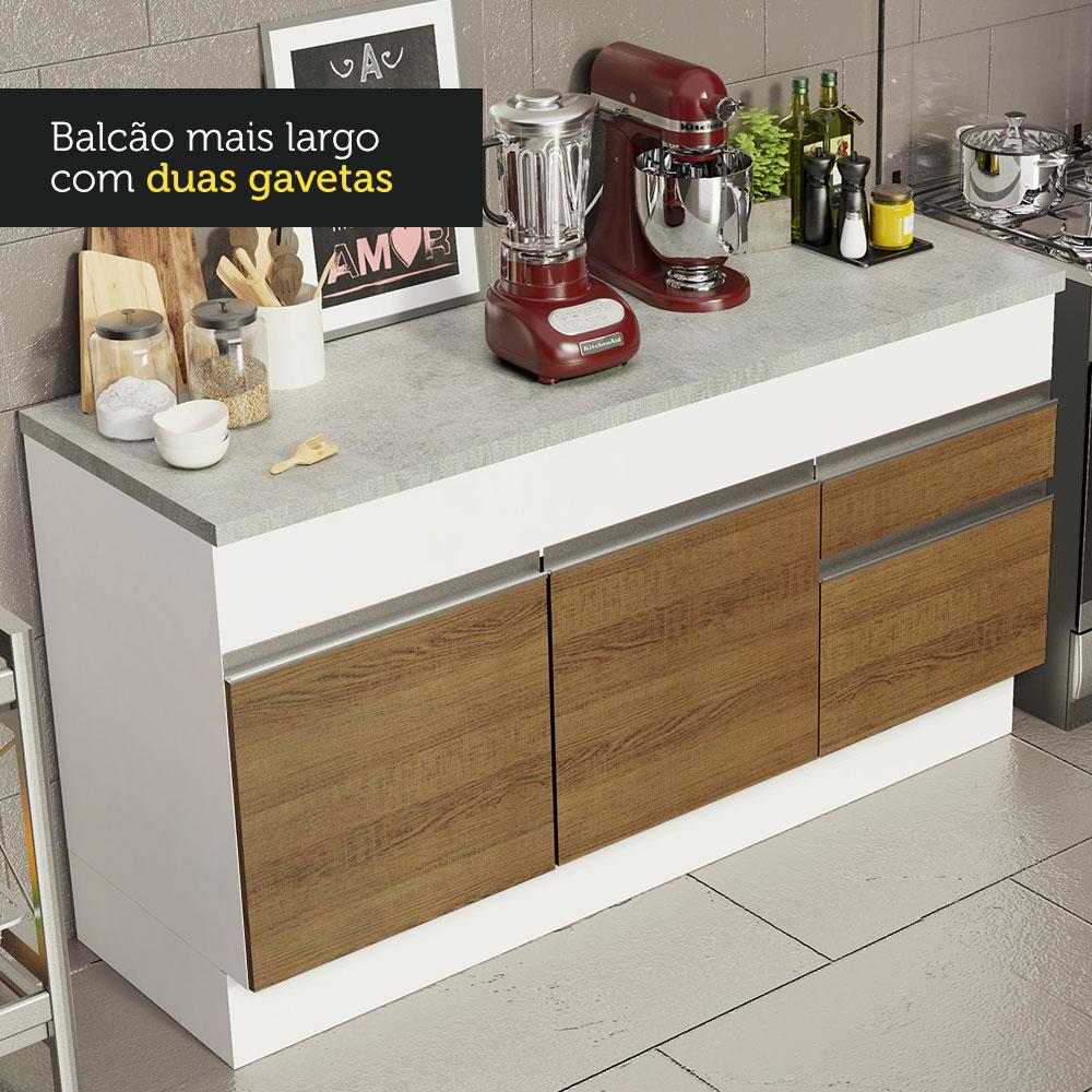 Balcão de Pia Armário de Cozinha 150 cm 2 Portas e 2 Gavetas (Com Tampo) Branco/Rustic Glamy Madesa