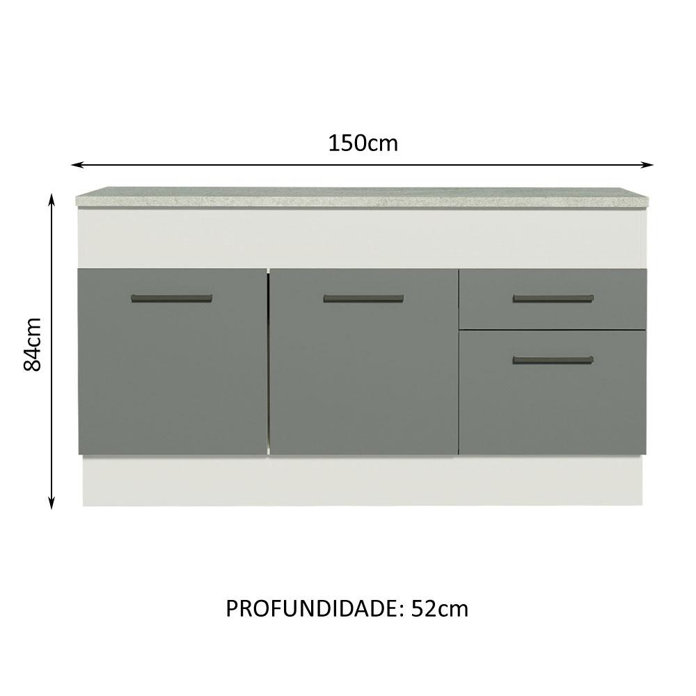 Balcão de Pia Cozinha 150 cm 2 Portas e 2 Gavetas (Com Tampo) Branco/Cinza Agata Madesa