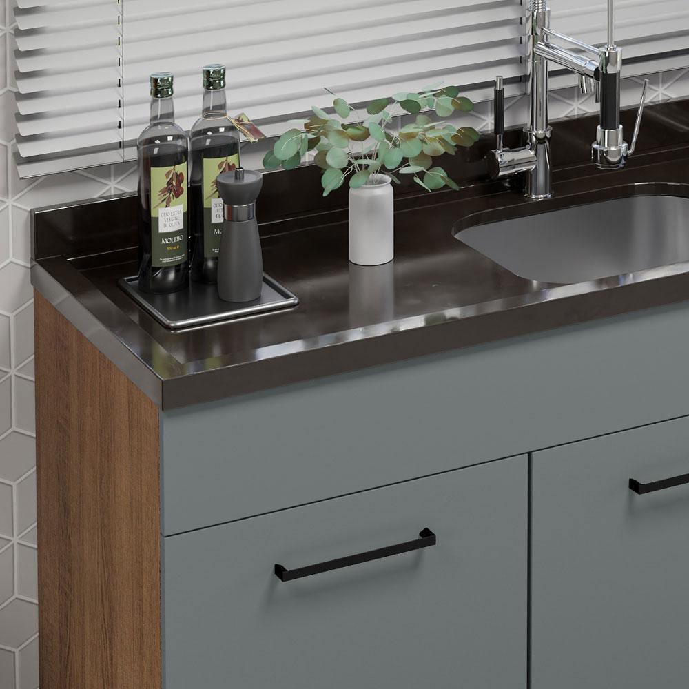 Balcão Gabinete de Pia Cozinha 150 cm 2 Portas e 2 Gavetas (Sem Tampo e Pia) Rustic/Cinza Agata Madesa