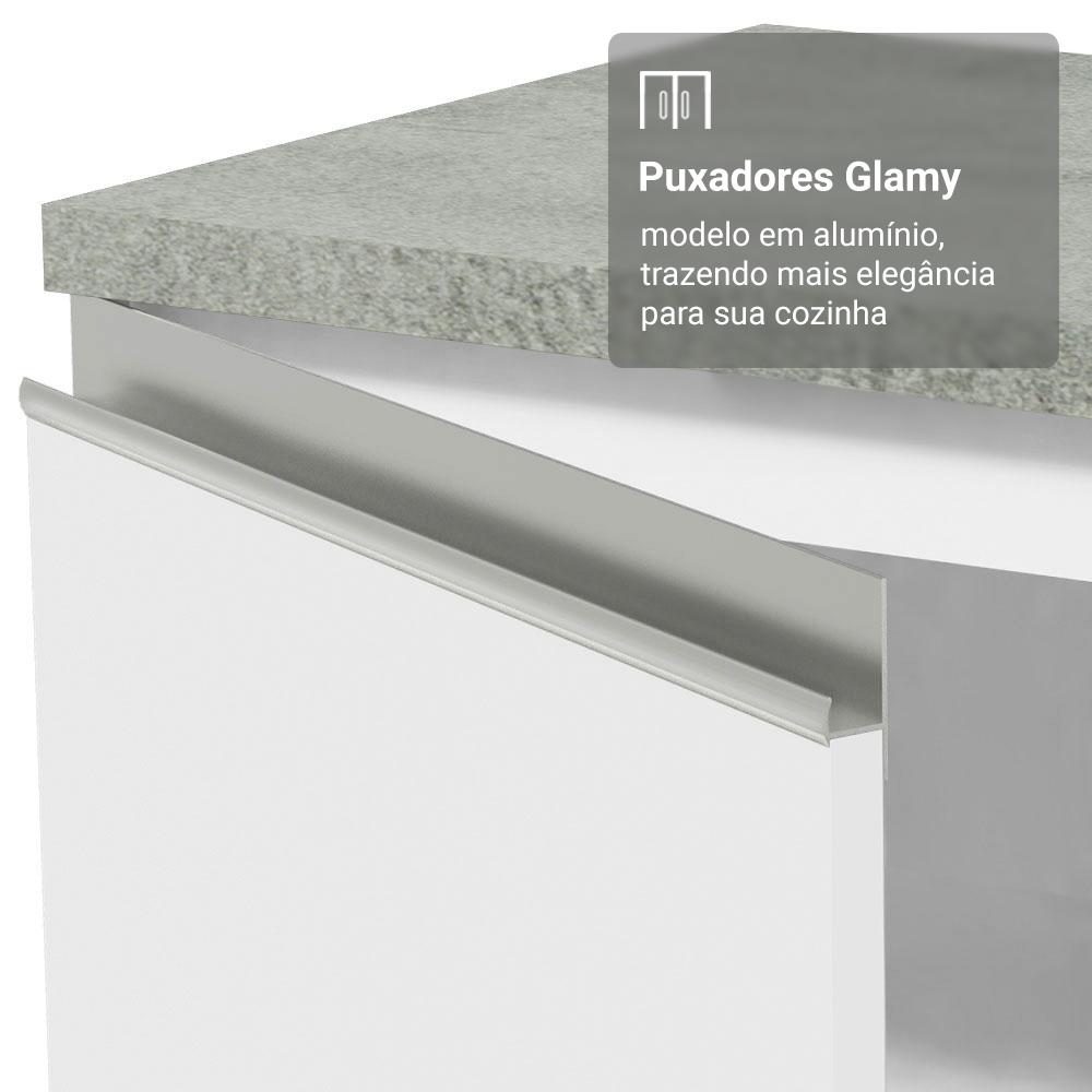 O Balcão de Cozinha de 50 cm da linha Glamy foi desenvolvido para quem busca qualidade e praticidade.A porta possui dobradiças com amortecimento, garantindo um fechamento suave e silencioso. Possui pés reguláveis e o rodapé removível facilita a limpeza. O espaço interno é ótimo para organizar utensílios, panelas ou produtos de uso frequente.O acabamento é branco, fácil de combinar com qualquer estilo de decoração .O puxador em perfil de alumínio, no estilo cava, é um dos destaques: moderno, minimalista e muito prático no dia a dia.Medidas totais:- 84 cm de altura- 50 cm de largura- 52 cm de profundidadeInformações técnicas:- Material: MDP- Peso suportado: 70kg- Altura dos pés: reguláveis de 15cm a 20cmO que você recebe:- Um Balcão de 50cm com uma portaCódigo do produto: G2450709GLÉ importante saber:- Imagens meramente ilustrativas, a decoração não acompanha o produto- A Madesa não disponibiliza serviço de montagem- O produto segue com manual de instalação e todas as ferragens necessárias para sua montagemA Madesa possui compromisso com a sustentabilidade. Geramos energia limpa em nossa própria usina, priorizamos fornecedores responsáveis e utilizamos plástico reciclado em nossa produção. Além disso, reinserimos sobras no ciclo de reciclagem e investimos no desenvolvimento de nossos colaboradores e da comunidade.Garantia: Este produto conta com 1 ano de garantia total, sendo 3 meses de garantia legal e 9 meses de garantia contratual. A garantia cobre exclusivamente defeitos de fabricação e vícios ocultos. Não estão cobertos: problemas decorrentes de montagem incorreta, uso inadequado, exposição à umidade, calor ou luz solar direta, modificações no produto ou desgaste natural.