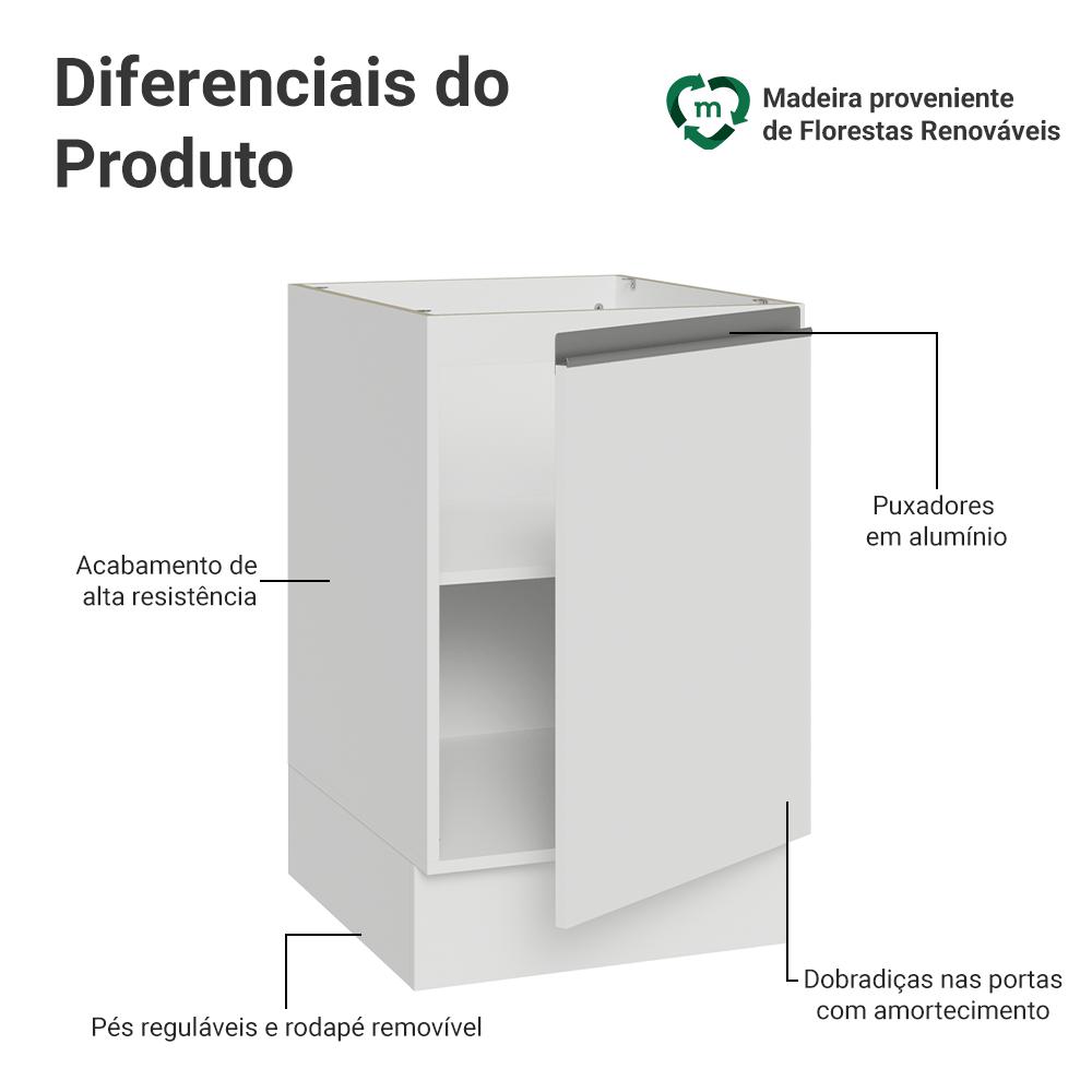 Balcão de Cozinha 50cm 1 Porta (Sem Tampo) B Glamy Madesa