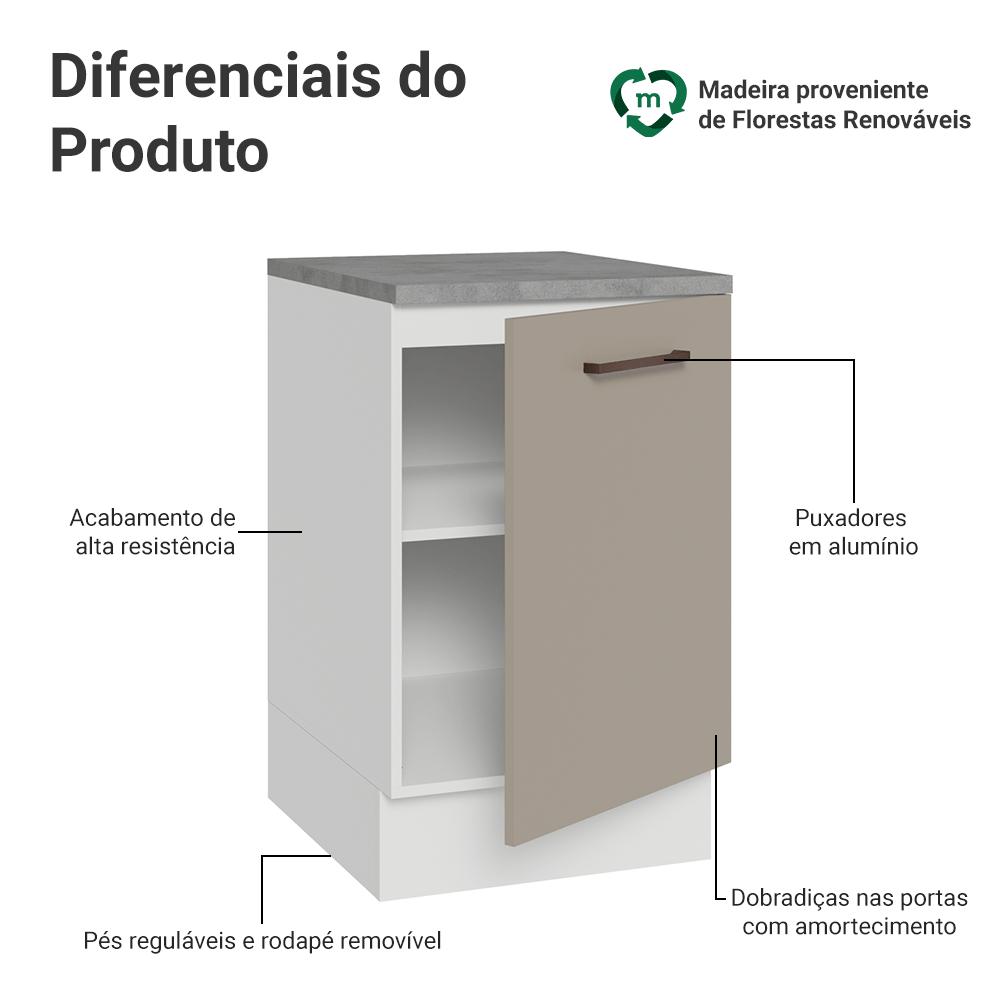 Balcão de Cozinha 50cm 1 Porta Branco/Crema Agata Madesa