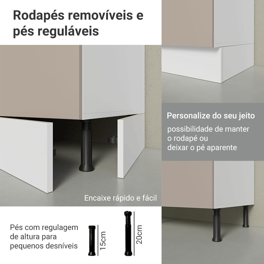 O balcão de 50 cm da linha Agata é a solução ideal para quem precisa de mais organização na cozinha, com uma porta e espaço interno bem distribuído, possui dois nichos perfeitos para guardar panelas ou utensílios.Combinando praticidade e qualidade, o móvel possui dobradiças metálicas com amortecimento, garantindo um fechamento suave e silencioso, possui pés reguláveis e o rodapé removível facilita a limpeza.O acabamento da estrutura é branco e a porta no tom crema, transmitindo aconchego e leveza. O destaque fica por conta do puxador bronze, que adiciona um toque sofisticado ao móvel. O design em alça garante praticidade e valoriza ainda mais.Medidas totais:- 84 cm de altura- 50 cm de largura- 52 cm de profundidadeInformações técnicas:- Material: MDP- Peso suportado: 70kg- Altura dos pés: reguláveis de 15cm a 20cmO que você recebe:- Um Balcão de 50cm com uma portaCódigo do produto: G245075LAGÉ importante saber:- Imagens meramente ilustrativas, a decoração não acompanha o produto- A Madesa não disponibiliza serviço de montagem- O produto segue com manual de instalação e todas as ferragens necessárias para sua montagemA Madesa possui compromisso com a sustentabilidade. Geramos energia limpa em nossa própria usina, priorizamos fornecedores responsáveis e utilizamos plástico reciclado em nossa produção. Além disso, reinserimos sobras no ciclo de reciclagem e investimos no desenvolvimento de nossos colaboradores e da comunidade.Garantia: Este produto conta com 1 ano de garantia total, sendo 3 meses de garantia legal e 9 meses de garantia contratual. A garantia cobre exclusivamente defeitos de fabricação e vícios ocultos. Não estão cobertos: problemas decorrentes de montagem incorreta, uso inadequado, exposição à umidade, calor ou luz solar direta, modificações no produto ou desgaste natural.