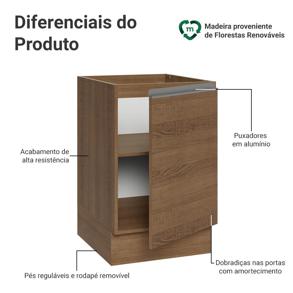 Balcão de Cozinha 50cm 1 Porta (Sem Tampo) R Glamy Madesa