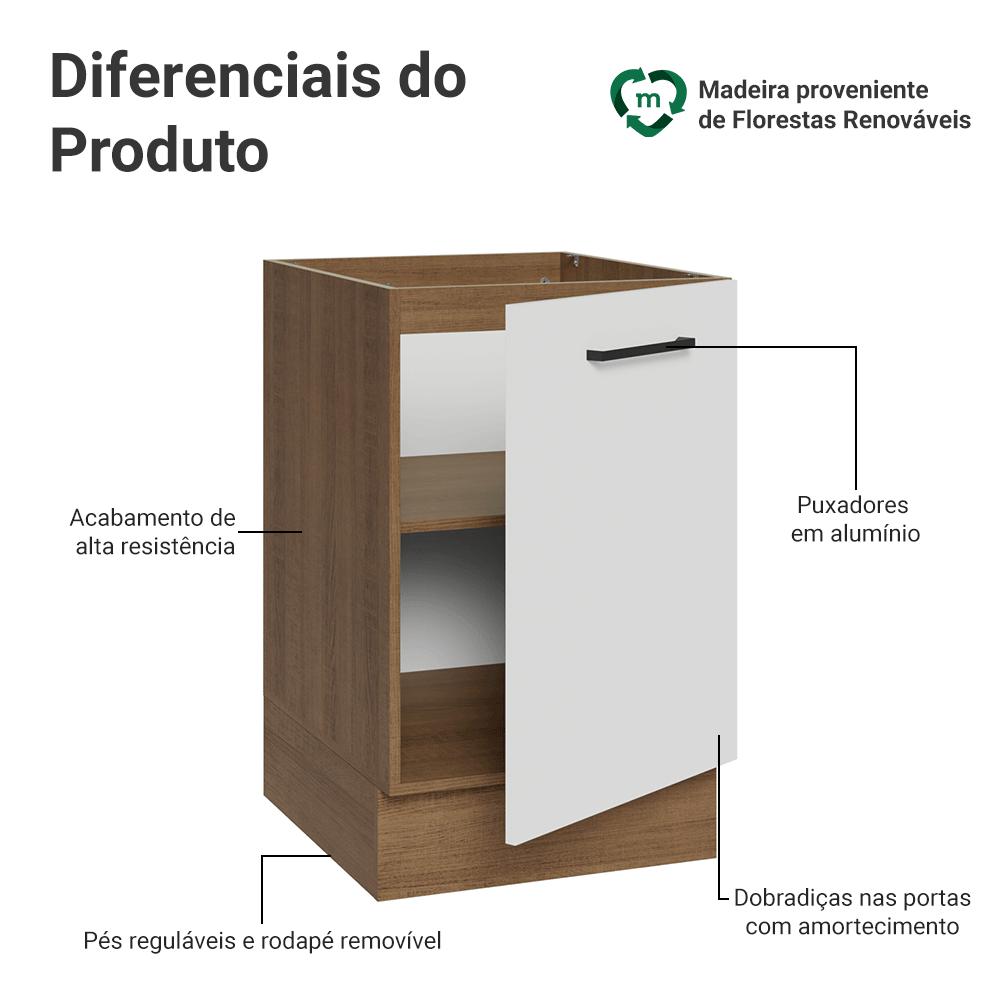 Balcão de Cozinha 50cm 1 Porta (Sem Tampo) RB Agata Madesa