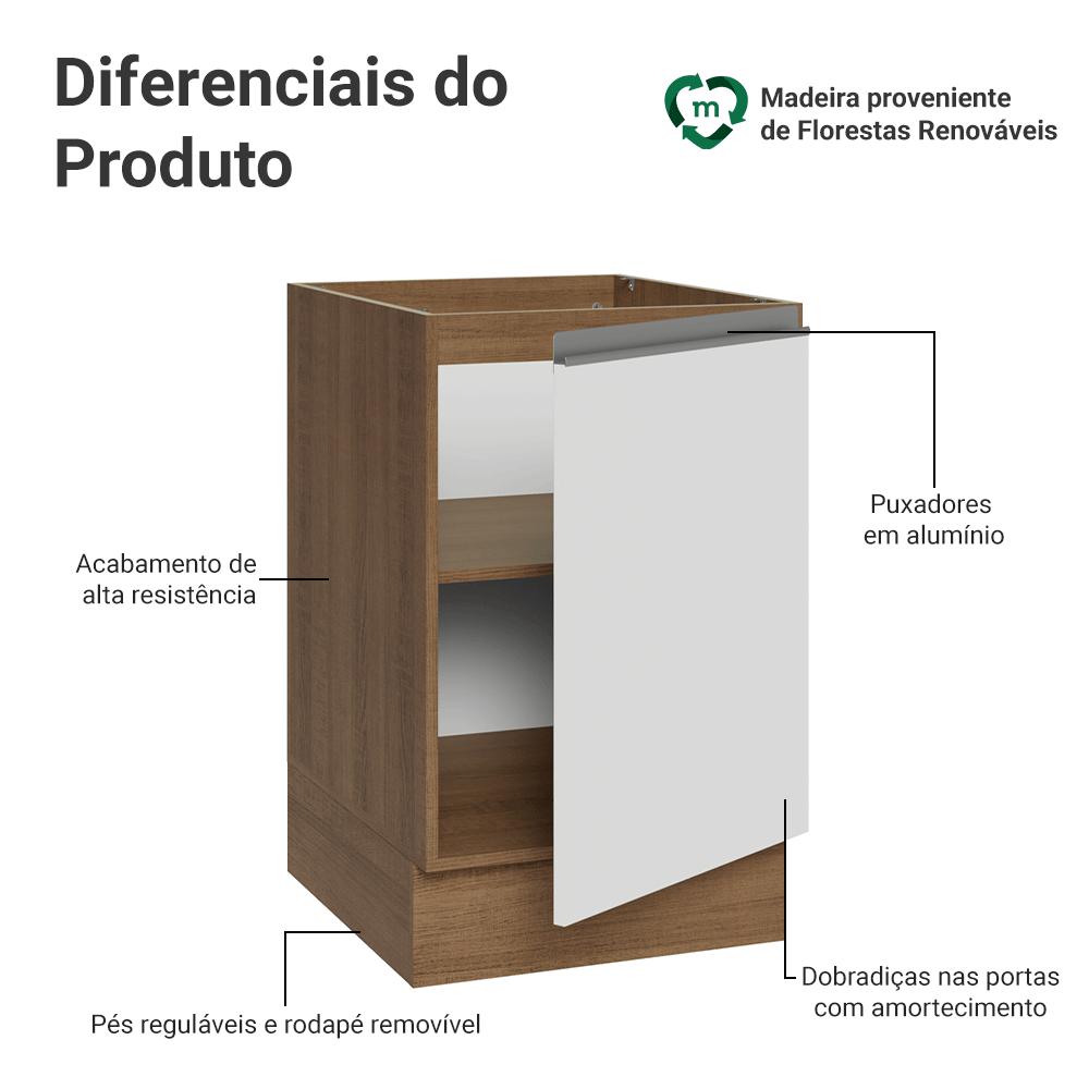 Balcão de Cozinha 50cm 1 Porta (Sem Tampo) RB Glamy Madesa