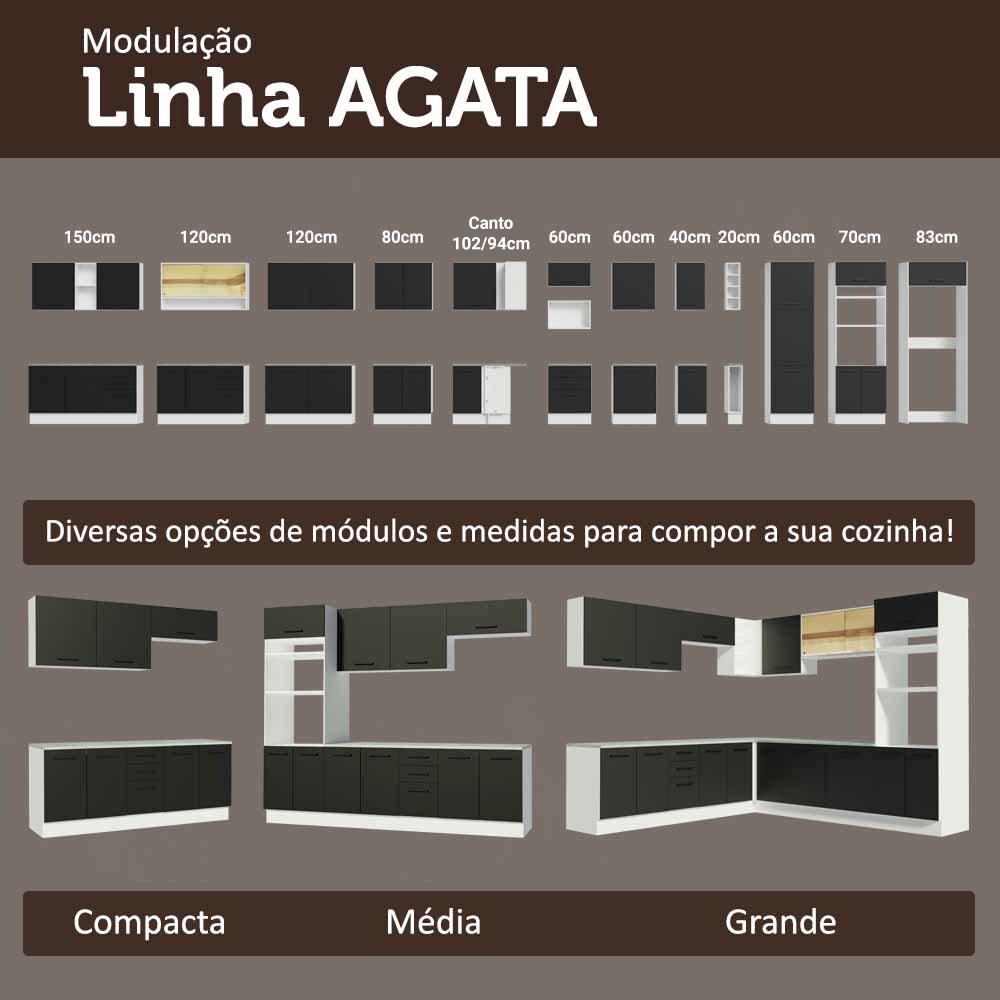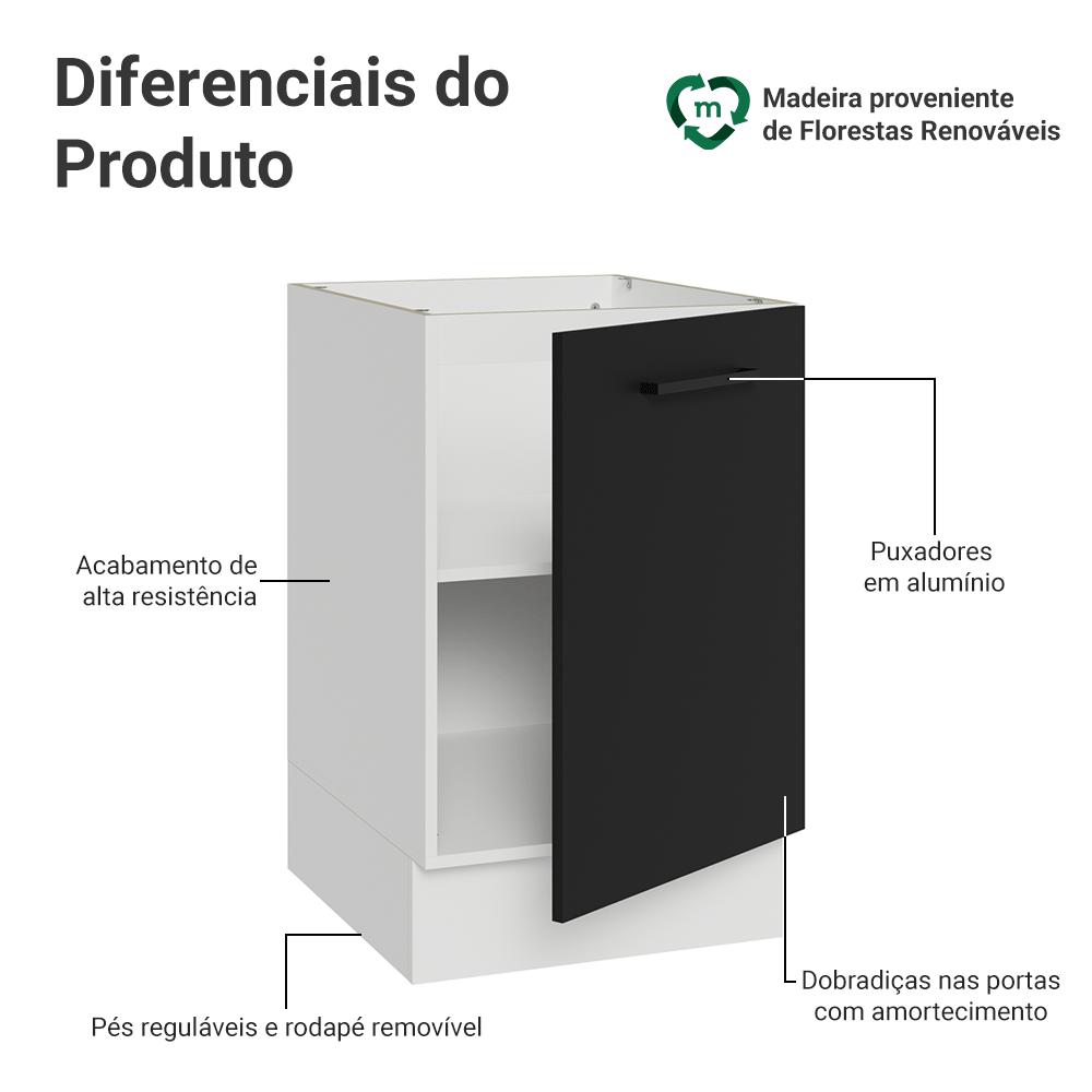 O balcão de 50 cm da linha Agata é a solução ideal para quem precisa de mais organização na cozinha, com uma porta e espaço interno bem distribuído.O móvel possui dobradiças metálicas com amortecimento, garantindo um fechamento suave e silencioso, possui pés reguláveis e o rodapé removível facilita a limpeza.O acabamento da estrutura é branco e a porta no tom preto, criando um contraste moderno e cheio de personalidade. Os puxadores também em preto reforçam esse visual sofisticado. O design em alça facilita o uso e agrega ainda mais elegância.Importante: este balcão é vendido sem tampo, perfeito para quem deseja personalizar o acabamento.Medidas totais:- 81 cm de altura- 50 cm de largura- 52 cm de profundidadeInformações técnicas:- Material: MDP- Peso suportado: 40kg- Altura dos pés: reguláveis de 15cm a 20cmO que você recebe:- Um Balcão de 50cm com uma porta (Não acompanha tampo)Código do produto: G2450773AGSTÉ importante saber:- Imagens meramente ilustrativas, a decoração não acompanha o produto- A Madesa não disponibiliza serviço de montagem- O produto segue com manual de instalação e todas as ferragens necessárias para sua montagemA Madesa possui compromisso com a sustentabilidade. Geramos energia limpa em nossa própria usina, priorizamos fornecedores responsáveis e utilizamos plástico reciclado em nossa produção. Além disso, reinserimos sobras no ciclo de reciclagem e investimos no desenvolvimento de nossos colaboradores e da comunidade.Garantia: Este produto conta com 1 ano de garantia total, sendo 3 meses de garantia legal e 9 meses de garantia contratual. A garantia cobre exclusivamente defeitos de fabricação e vícios ocultos. Não estão cobertos: problemas decorrentes de montagem incorreta, uso inadequado, exposição à umidade, calor ou luz solar direta, modificações no produto ou desgaste natural.
