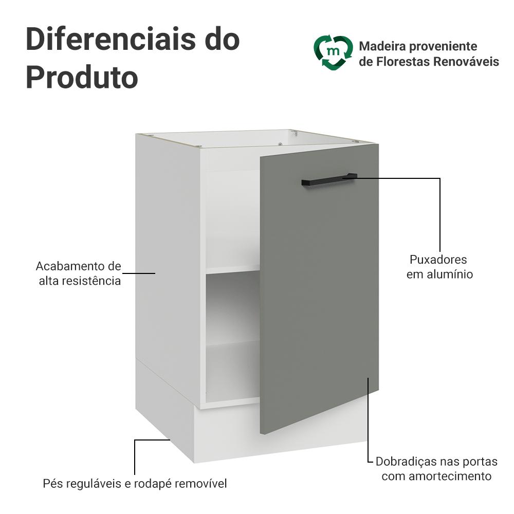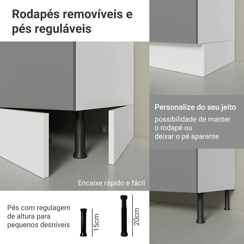 O balcão de 50 cm da linha Agata é a solução ideal para quem precisa de mais organização na cozinha, com uma porta e espaço interno bem distribuído.O móvel possui dobradiças metálicas com amortecimento, garantindo um fechamento suave e silencioso, possui pés reguláveis e o rodapé removível facilita a limpeza.A combinação da estrutura branca com a porta em cinza cria um visual contemporâneo. Os puxadores pretos reforçam o contraste e adicionam personalidade ao móvel, enquanto o formato em alça deixa o uso mais práticoImportante: este balcão é vendido sem tampo, perfeito para quem deseja personalizar o acabamento.Medidas totais:- 81 cm de altura- 50 cm de largura- 52 cm de profundidadeInformações técnicas:- Material: MDP- Peso suportado: 40kg- Altura dos pés: reguláveis de 15cm a 20cmO que você recebe:- Um Balcão de 50cm com uma porta (Não acompanha tampo)Código do produto: G24507F8AGSTÉ importante saber:- Imagens meramente ilustrativas, a decoração não acompanha o produto- A Madesa não disponibiliza serviço de montagem- O produto segue com manual de instalação e todas as ferragens necessárias para sua montagemA Madesa possui compromisso com a sustentabilidade. Geramos energia limpa em nossa própria usina, priorizamos fornecedores responsáveis e utilizamos plástico reciclado em nossa produção. Além disso, reinserimos sobras no ciclo de reciclagem e investimos no desenvolvimento de nossos colaboradores e da comunidade.Garantia: Este produto conta com 1 ano de garantia total, sendo 3 meses de garantia legal e 9 meses de garantia contratual. A garantia cobre exclusivamente defeitos de fabricação e vícios ocultos. Não estão cobertos: problemas decorrentes de montagem incorreta, uso inadequado, exposição à umidade, calor ou luz solar direta, modificações no produto ou desgaste natural.