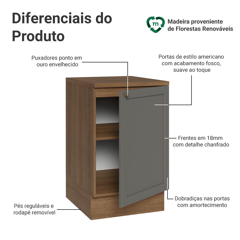 Balcão de Cozinha 50cm 1 Porta Rustic/Cinza Vik Madesa