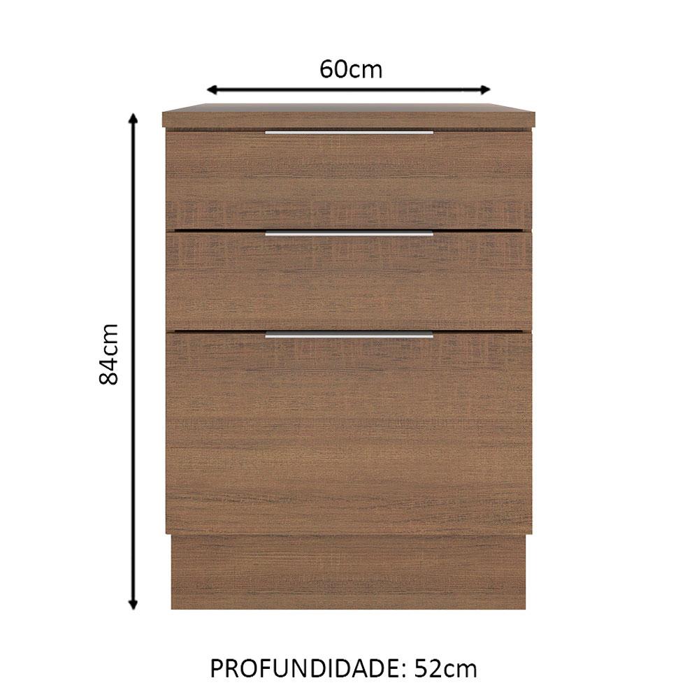 Balcão Madesa Stella 60 cm 3 Gavetas - Rustic