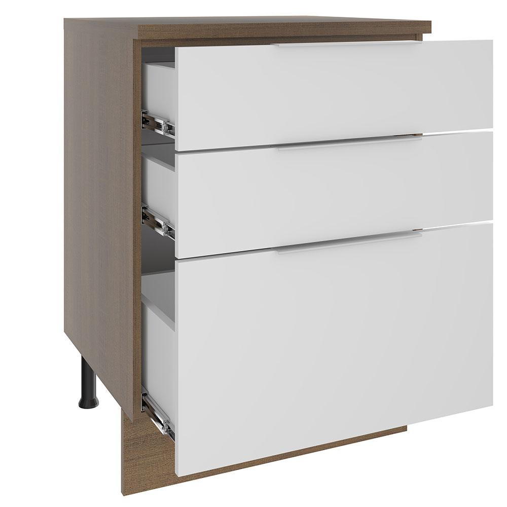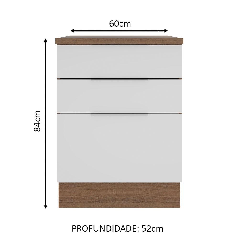 Balcão Madesa Stella 60 cm 3 Gavetas - Rustic/Branco