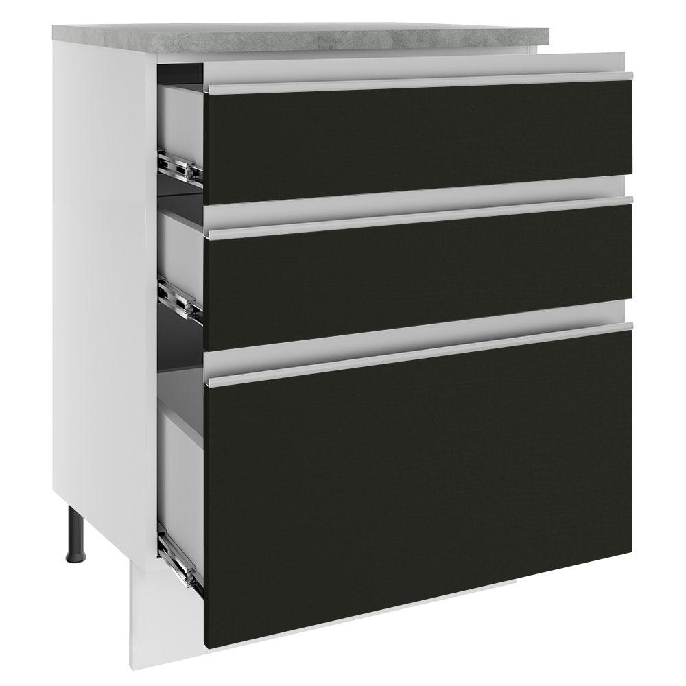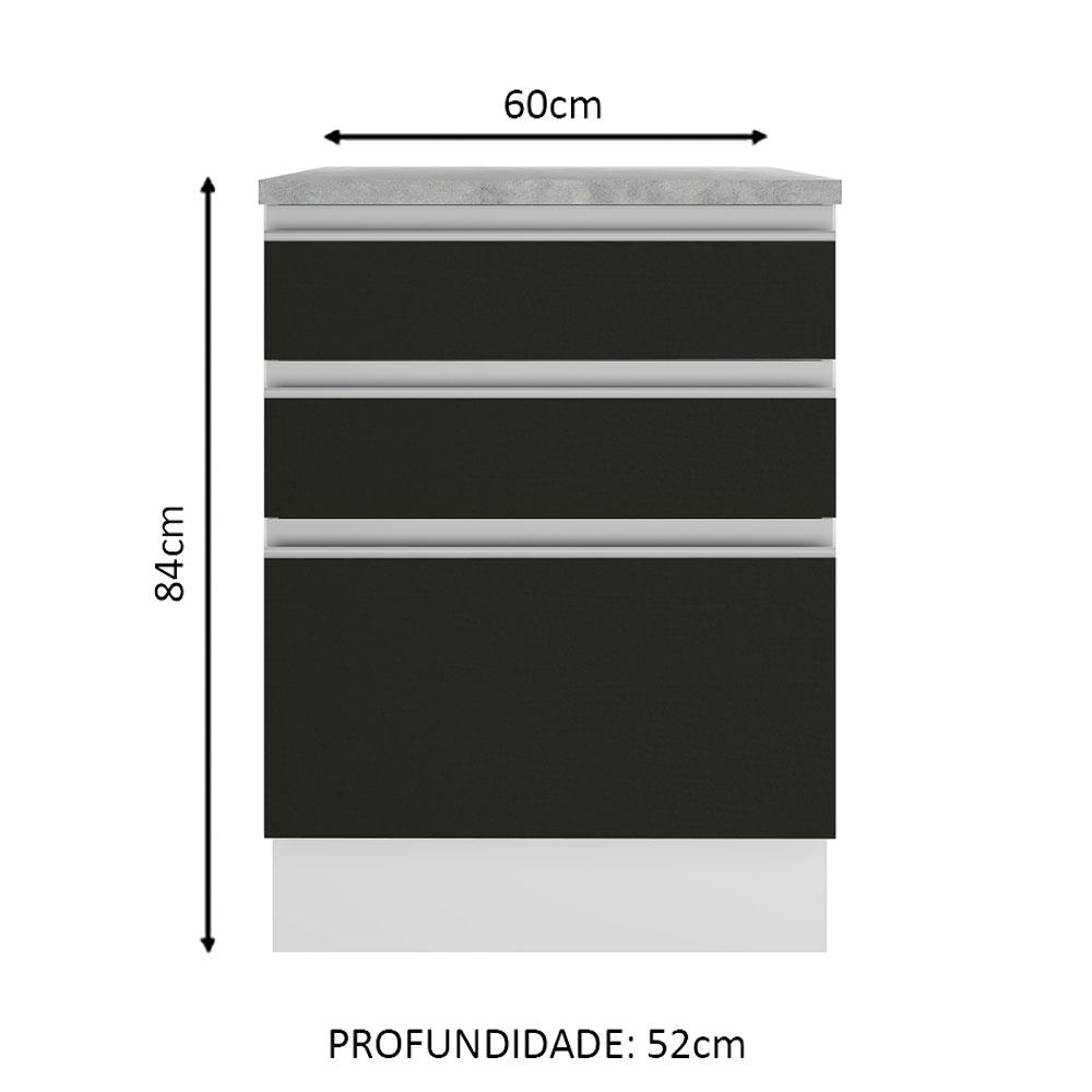 Balcão Armário de Cozinha 60 cm 3 Gavetas Branco/Preto Glamy Madesa
